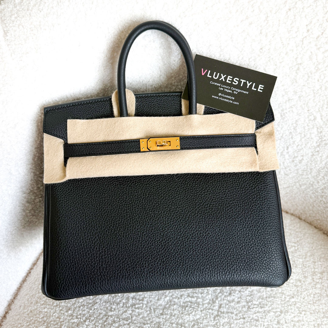 The Hermés Birkin 25cm Black Togo is a luxurious and timeless handbag. Crafted from grained calfskin leather, known for its durability and scratch resistance, this luxurious piece is designed to stand the test of time. The exquisite gold hardware beautifully complements the black leather, adding a touch of modern elegance. Perfectly sized at 25cm, this Birkin bag is spacious enough to hold all your essentials.