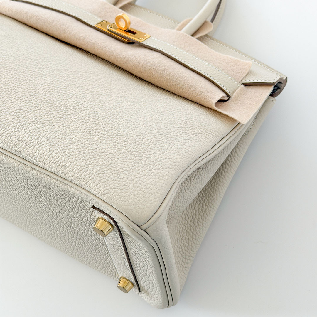 The Hermés Birkin 25cm Craie Togo is a luxurious and timeless handbag. Crafted from grained calfskin leather, known for its durability and scratch resistance, this luxurious piece is designed to stand the test of time. The exquisite gold hardware beautifully complements the warm off-white leather, adding a touch of modern elegance. Perfectly sized at 25cm, this Birkin bag is spacious enough to hold all your essentials.