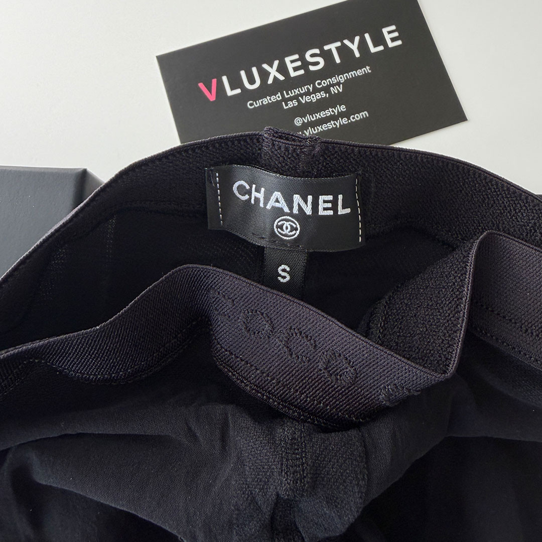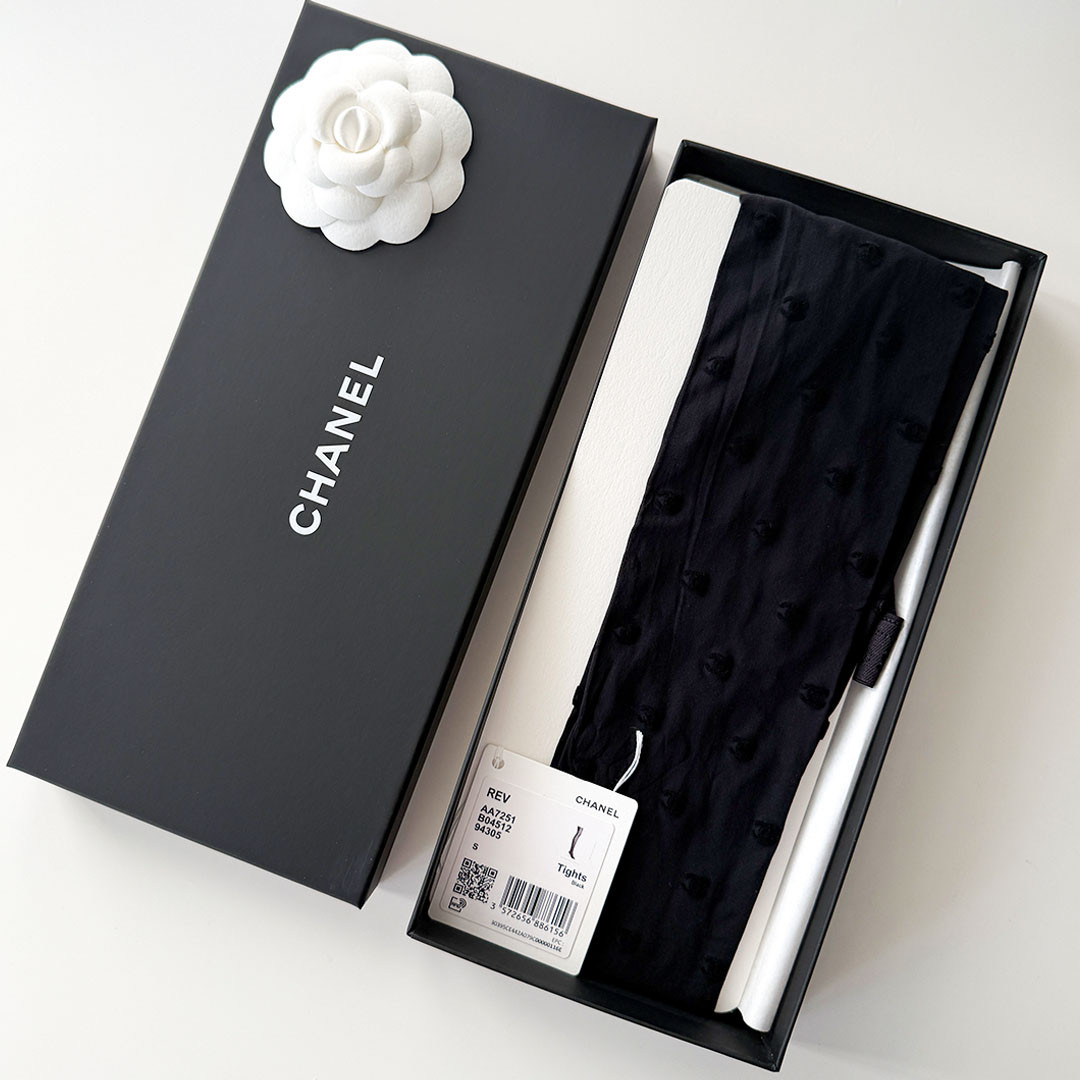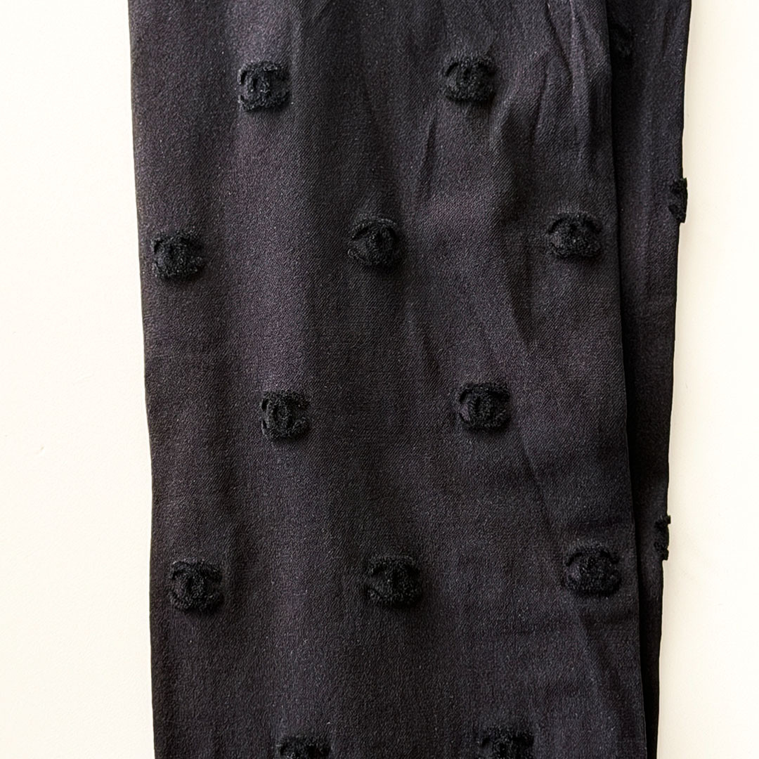 Introducing the Chanel Black CC Printed Tights, a luxurious statement piece that effortlessly combines fashion and elegance. These authentic Chanel logo-embellished tights are designed to elevate your look, making them a chic accessory for any occasion.