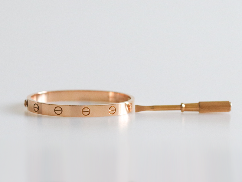By 2011, Cartier joined the screws to the LOVE Bracelet’s halves to reduce the risk of loss. When opening or closing the bracelet, the screws could no longer be completely removed, also making the Bracelet easier to wear and remove.