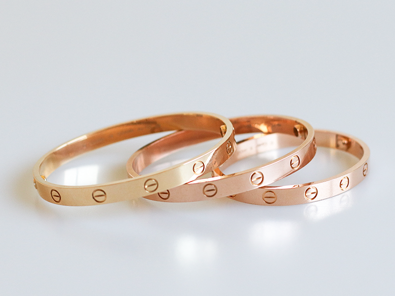 The former Cartier LOVE bracelet included screws that were removable when the bracelet opened, letting the two halves separate from the bracelet. Newer styles feature screws that are permanently attached—they do not come out of the bracelet when it’s opened, which prevents loss. While its aesthetic remains intact, the LOVE Bracelet has progressed with upgrades to its locking mechanism—the result: enhanced security and ease of wear.