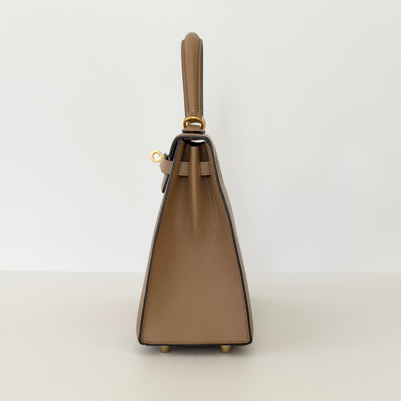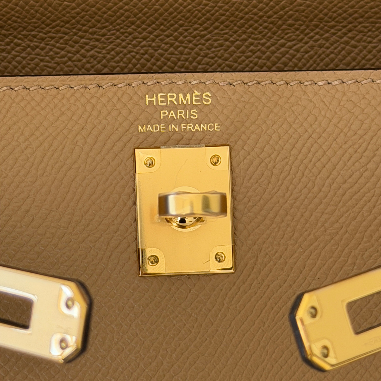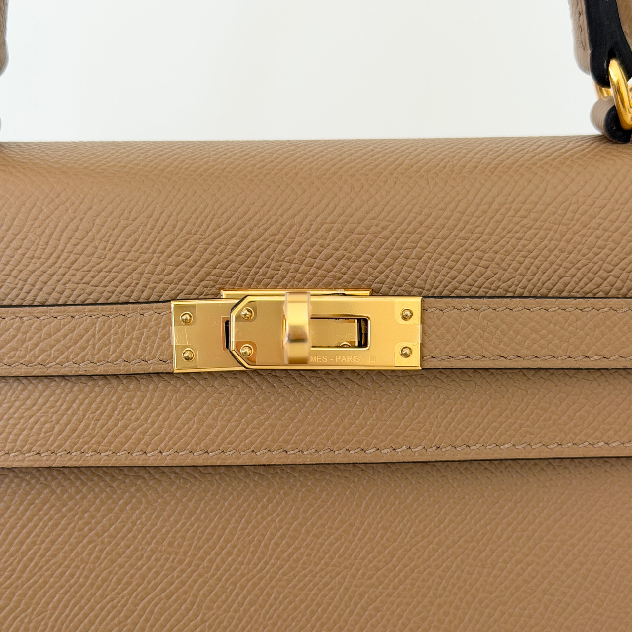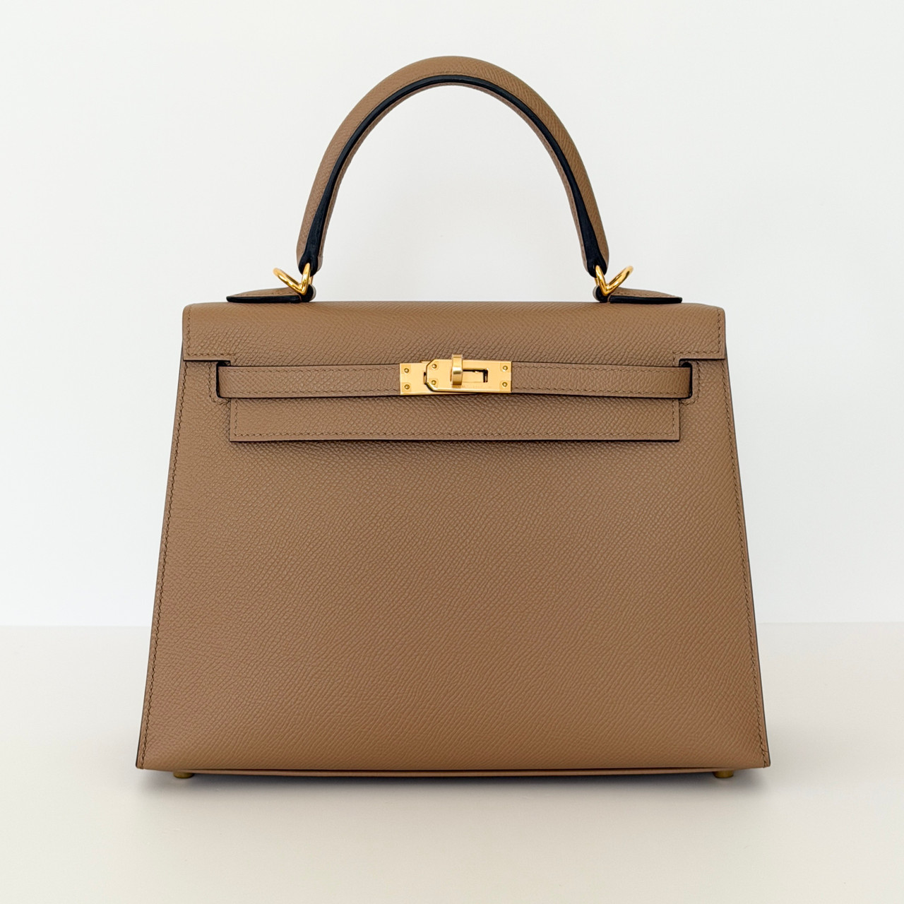 The Hermes Kelly 25 Sellier Chai Epsom with Gold Hardware is a true symbol of luxury and elegance. This iconic handbag is crafted from luxurious, warm, milky brown or beige calfskin leather with gold-plated hardware. The classic design features a leather top handle for sophisticated carry and an optional shoulder strap for versatility.
