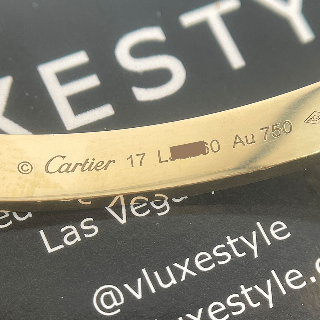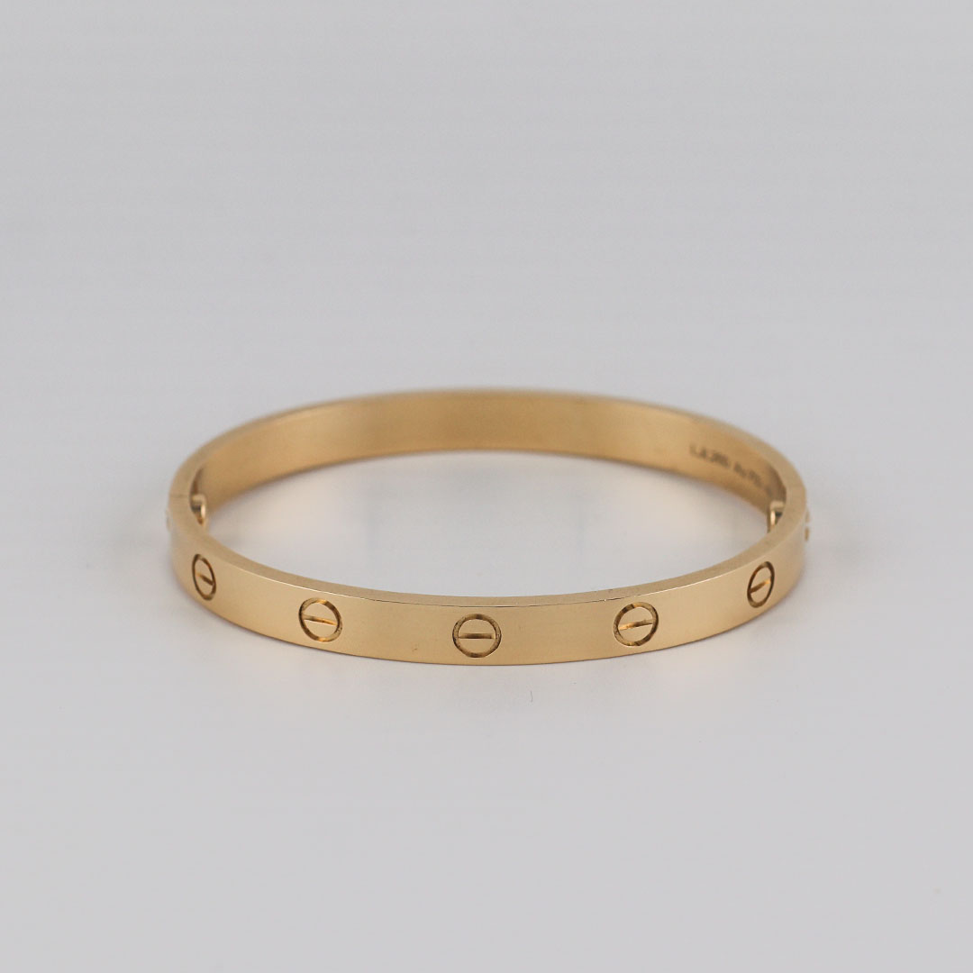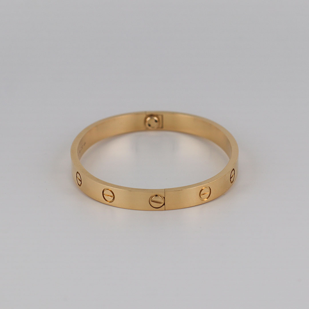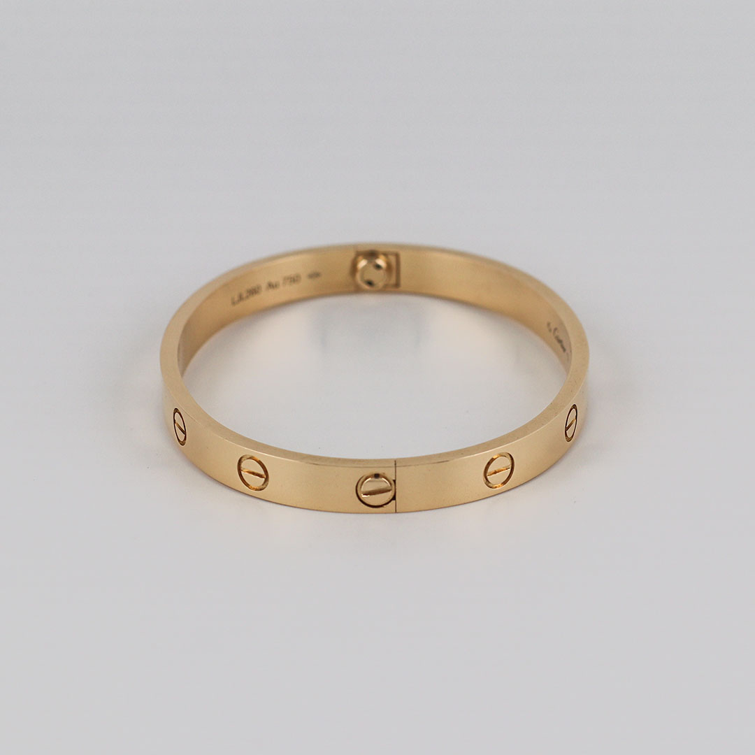 Designed with an oval shape, the bracelet ensures a close and comfortable fit. Whether worn solo or styled with complementary pieces, this authentic Cartier Love Bracelet makes a statement of sophistication and luxury in any ensemble.