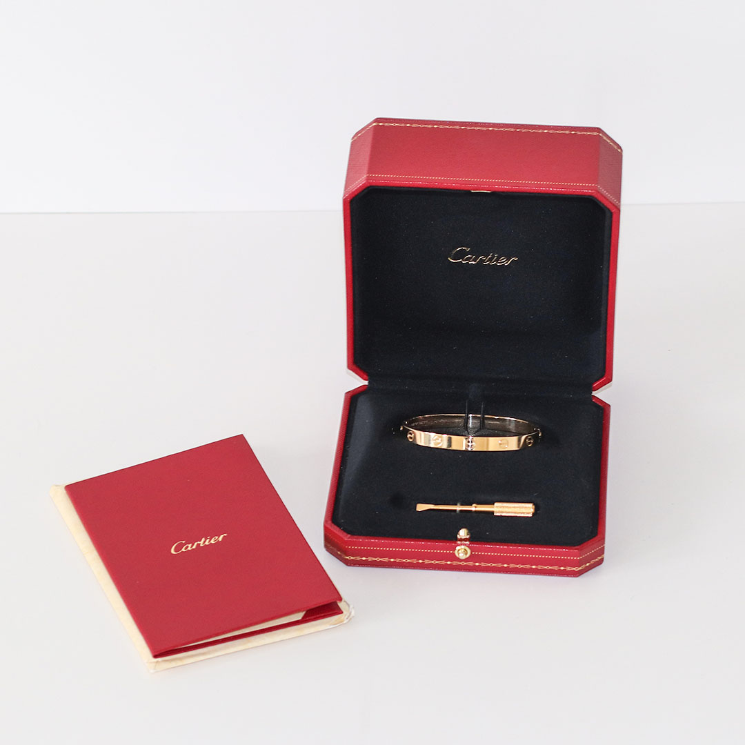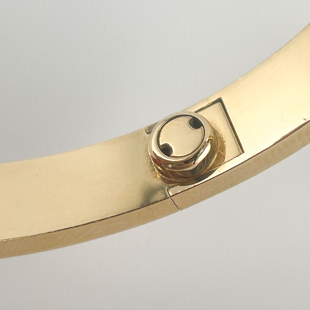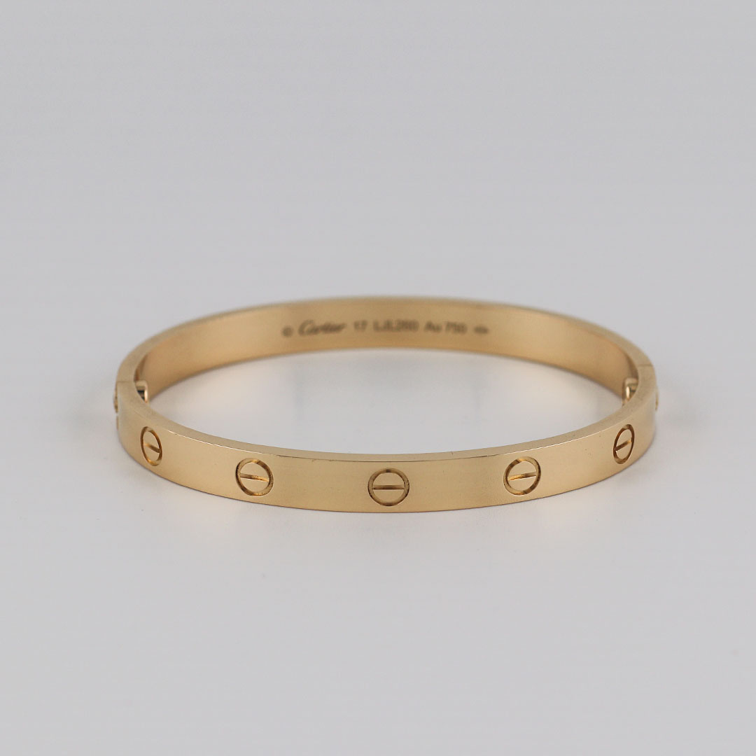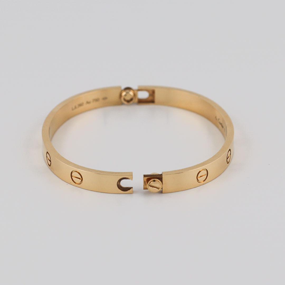 Designed with an oval shape, the bracelet ensures a close and comfortable fit. Whether worn solo or styled with complementary pieces, this authentic Cartier Love Bracelet makes a statement of sophistication and luxury in any ensemble.