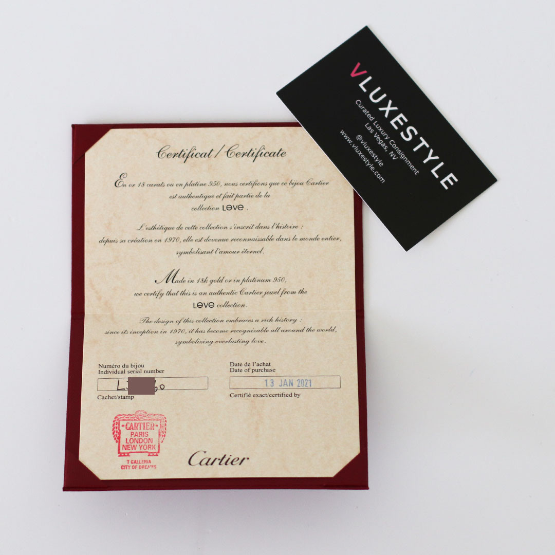 Comes with: Full set, screw, Cartier Certificate of Authenticity, Cartier jewelry box, VLuxeStyle Authenticity Certificate
