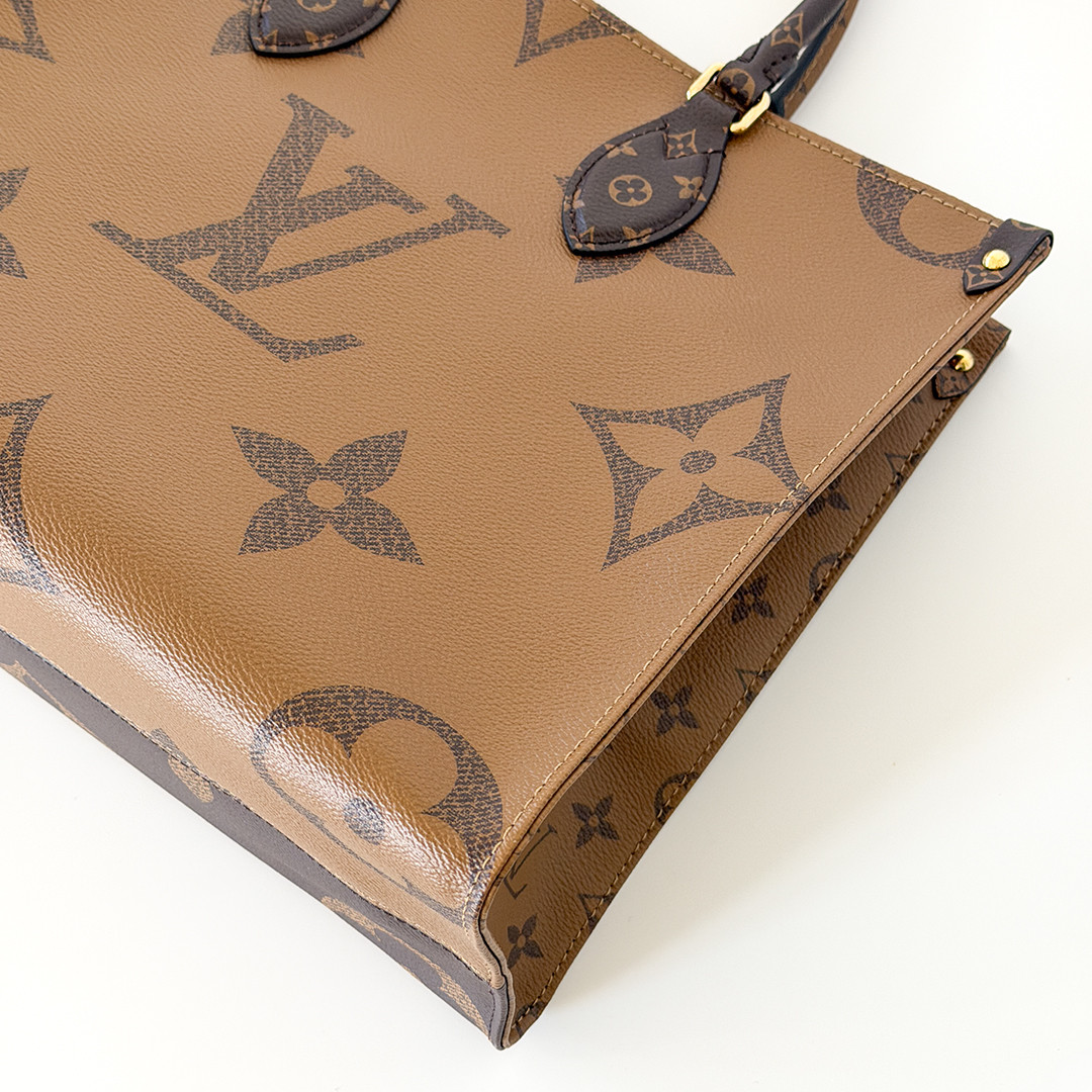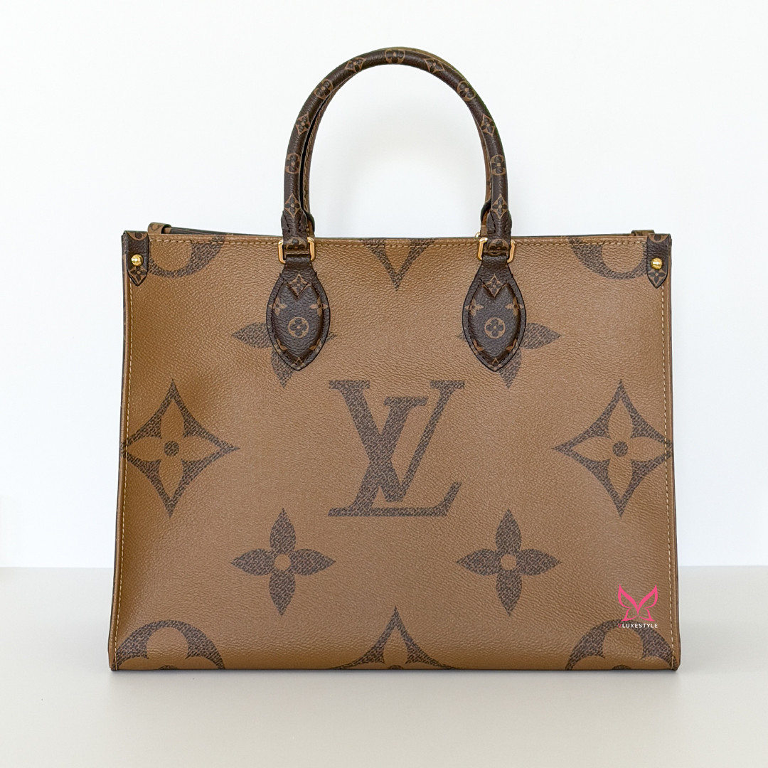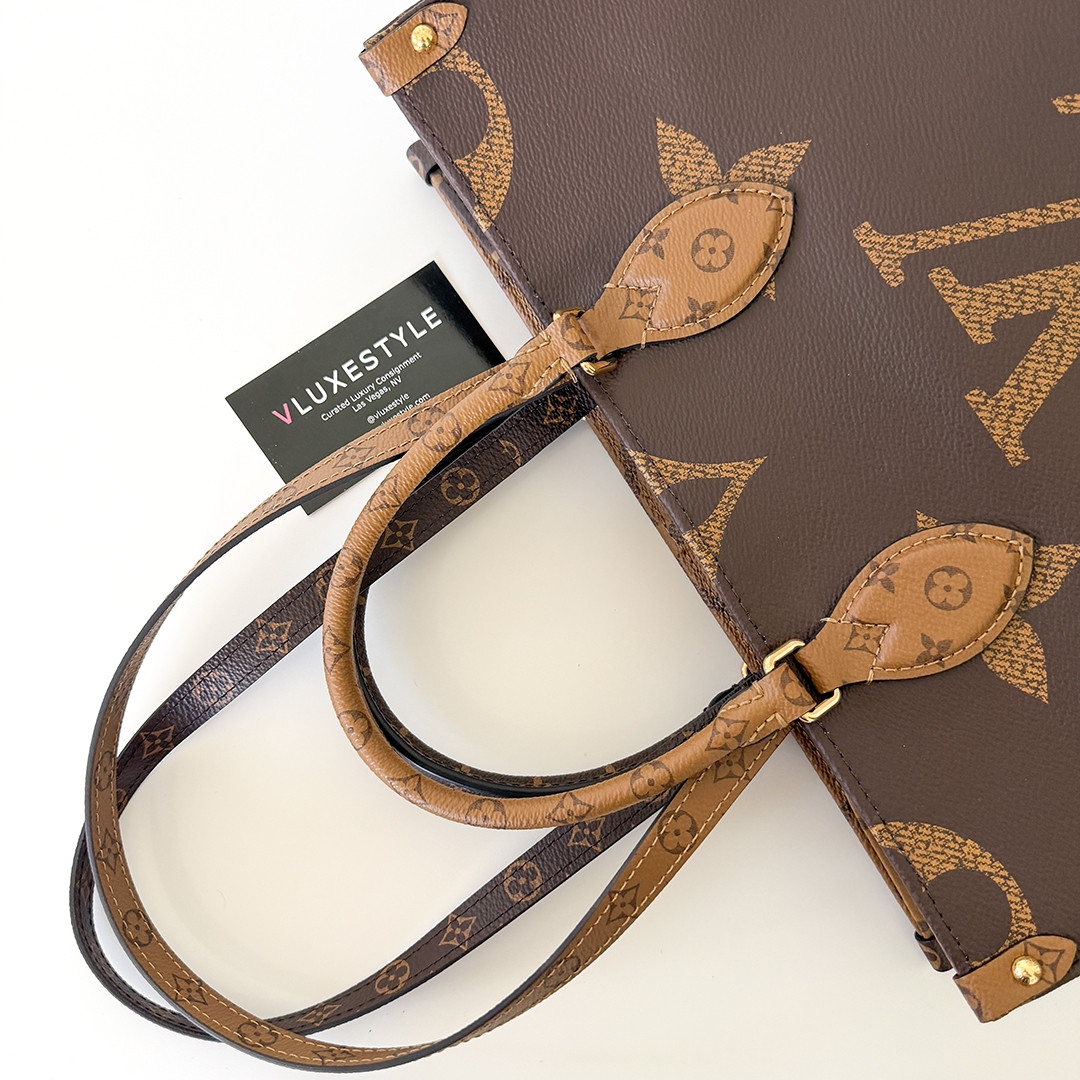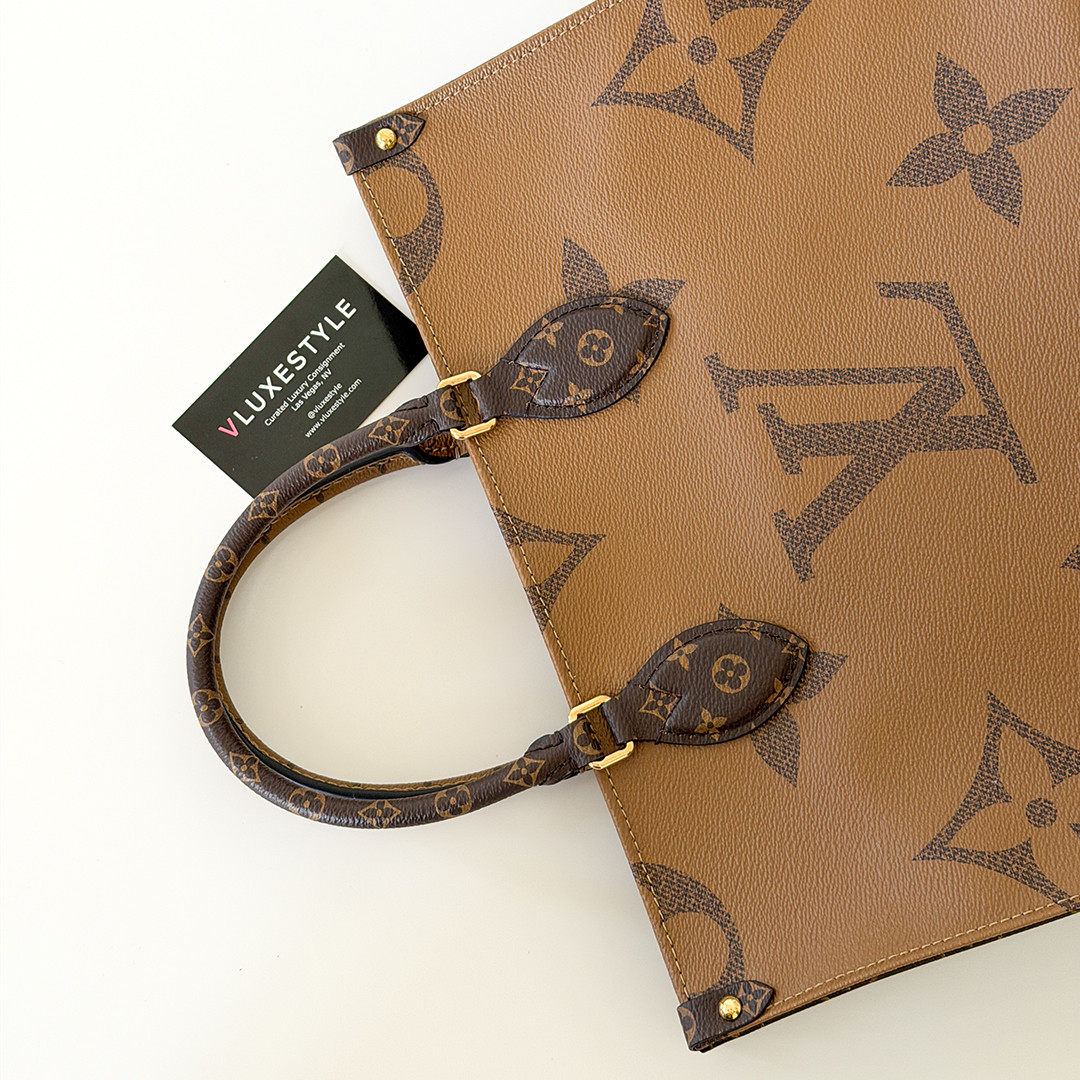 The On The Go MM Tote Reverse Monogram is an exquisite piece of luxury from Louis Vuitton, combining classic elegance with contemporary style. This chic tote features the iconic oversized Louis Vuitton monogram printed in striking reverse monogram on durable coated canvas. The rich brown tones are complemented by polished gold-tone hardware, adding a touch of sophistication to its overall design.