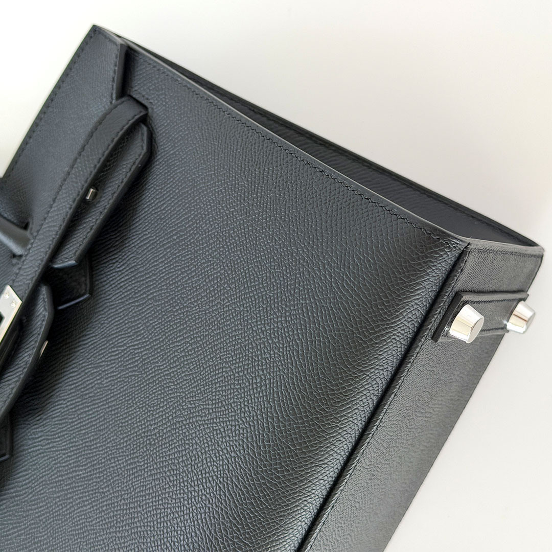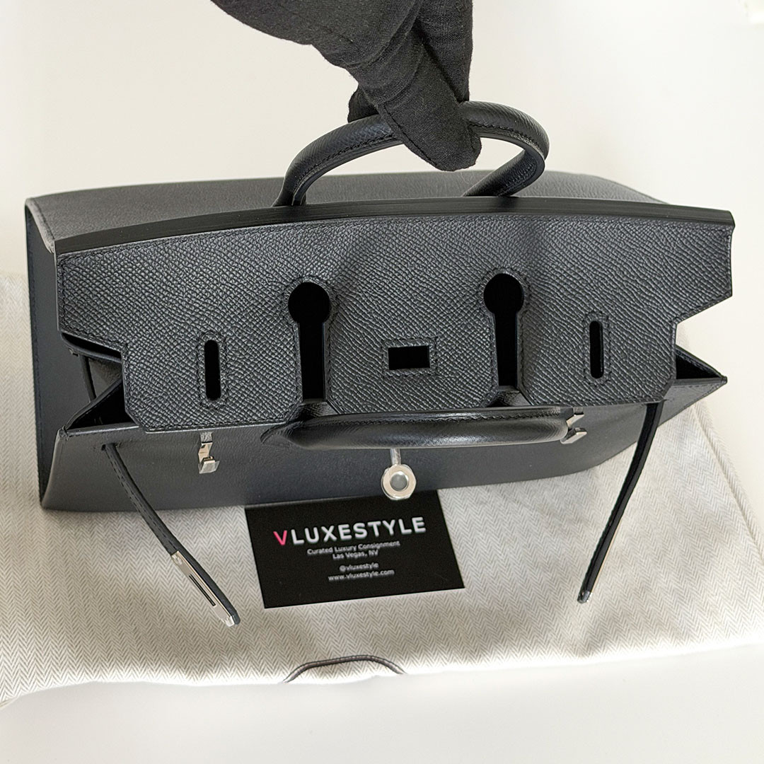 The Authentic Hermés Birkin 25cm Epsom is a luxurious and timeless handbag. Crafted from black-grained calfskin leather, it is beautiful, durable, and scratch-resistant. The stunning gold hardware complements the black leather perfectly, adding a touch of luxury to the bag.