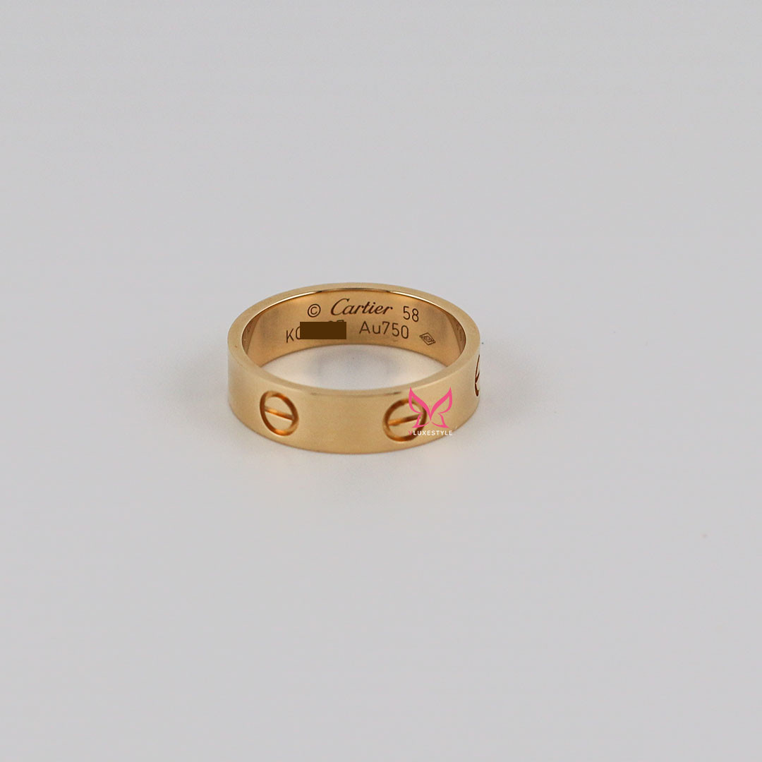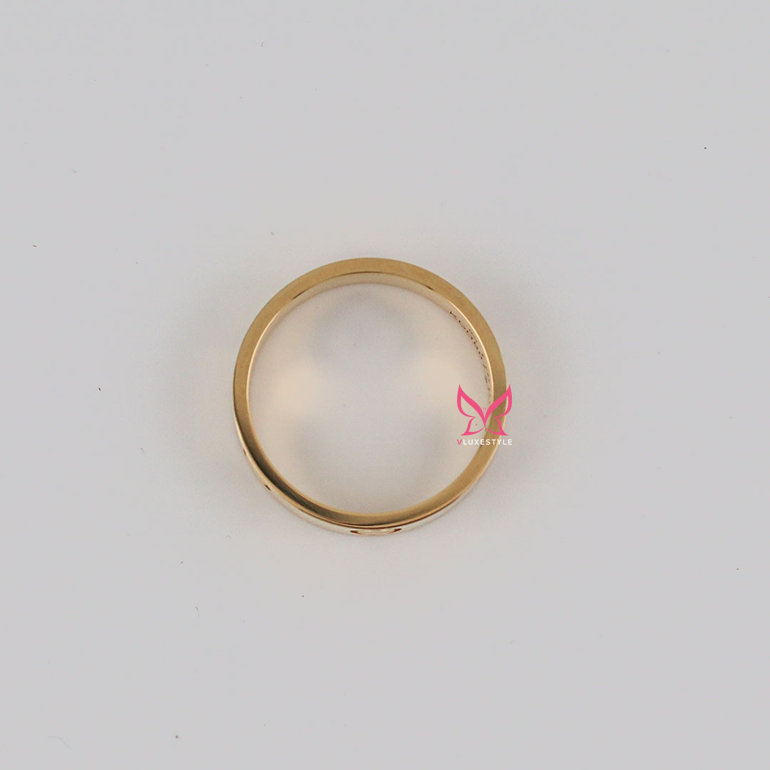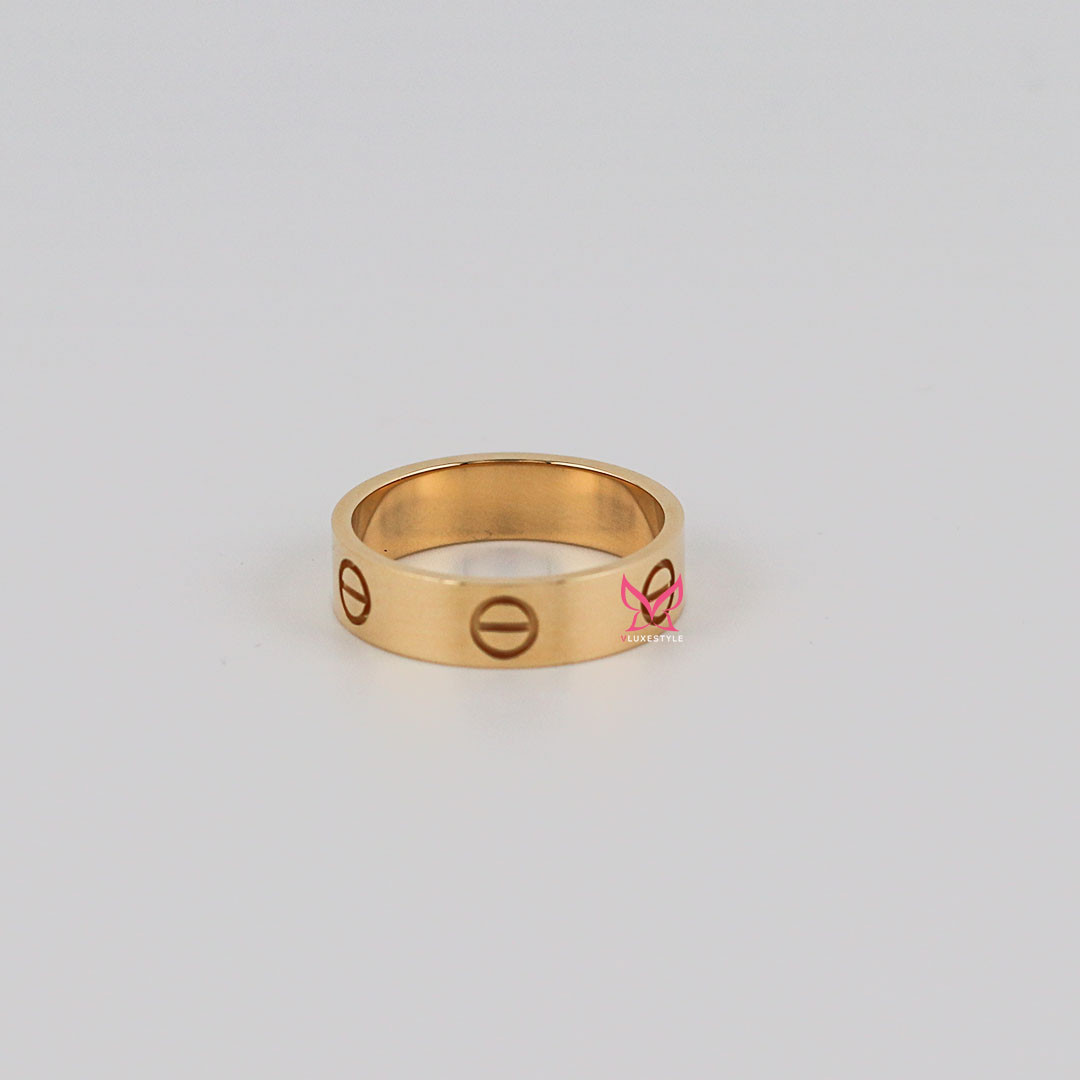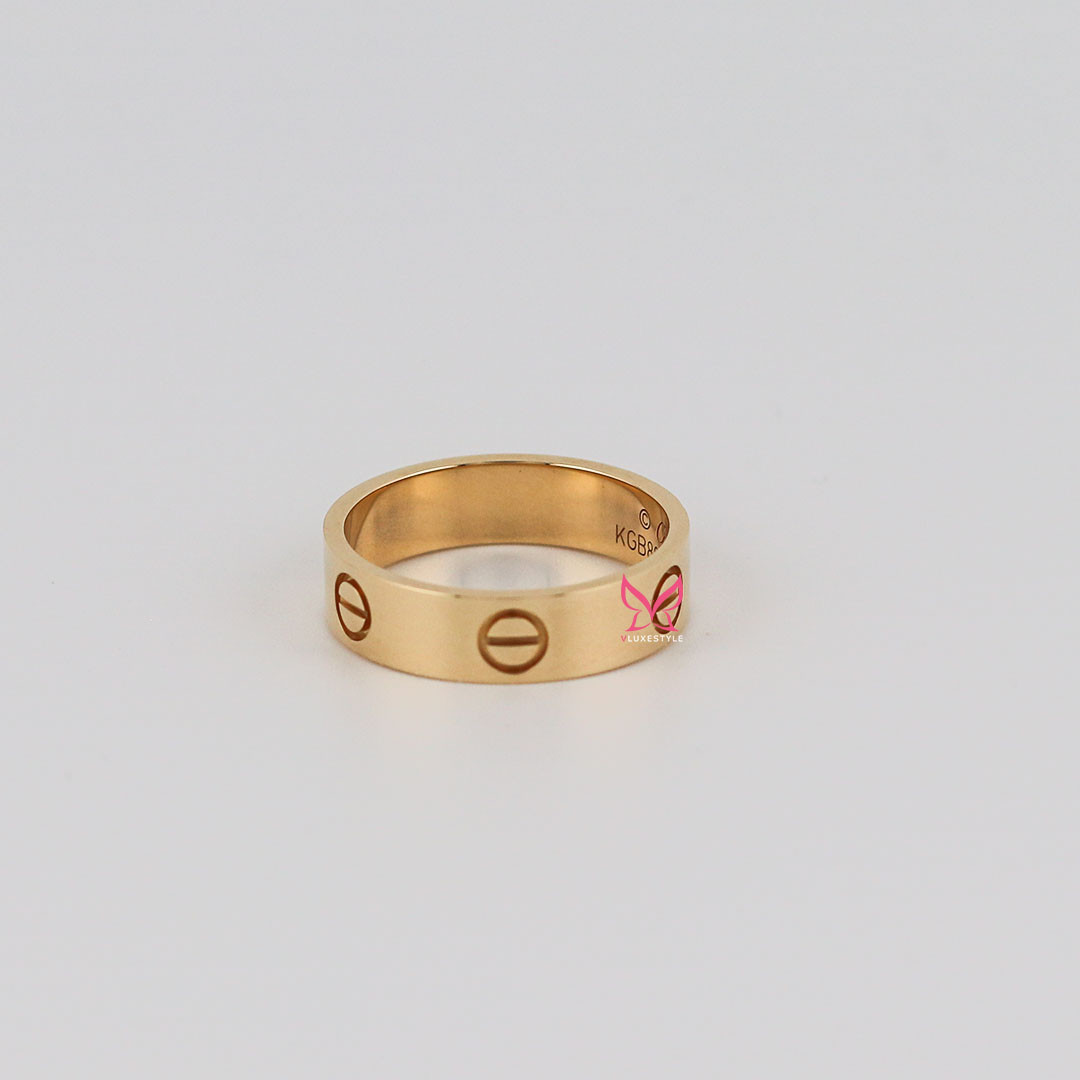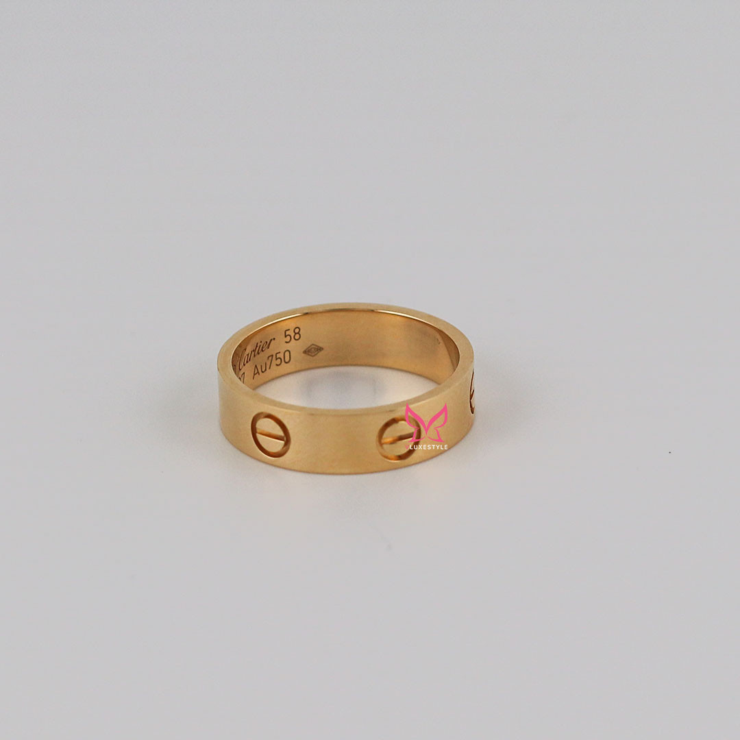The Cartier Love Ring, crafted in 18K Yellow Gold, is a luxurious and iconic symbol of everlasting love and commitment. Crafted from exquisite 18K yellow gold, this 5.5mm-wide band is part of Cartier's renowned Love collection, known for its timeless screw motifs that represent the enduring nature of love. Its classic and versatile design makes it perfect for wearing alone or stacking with other rings to create a personalized and elegant look, making it a cherished addition to any jewelry collection.