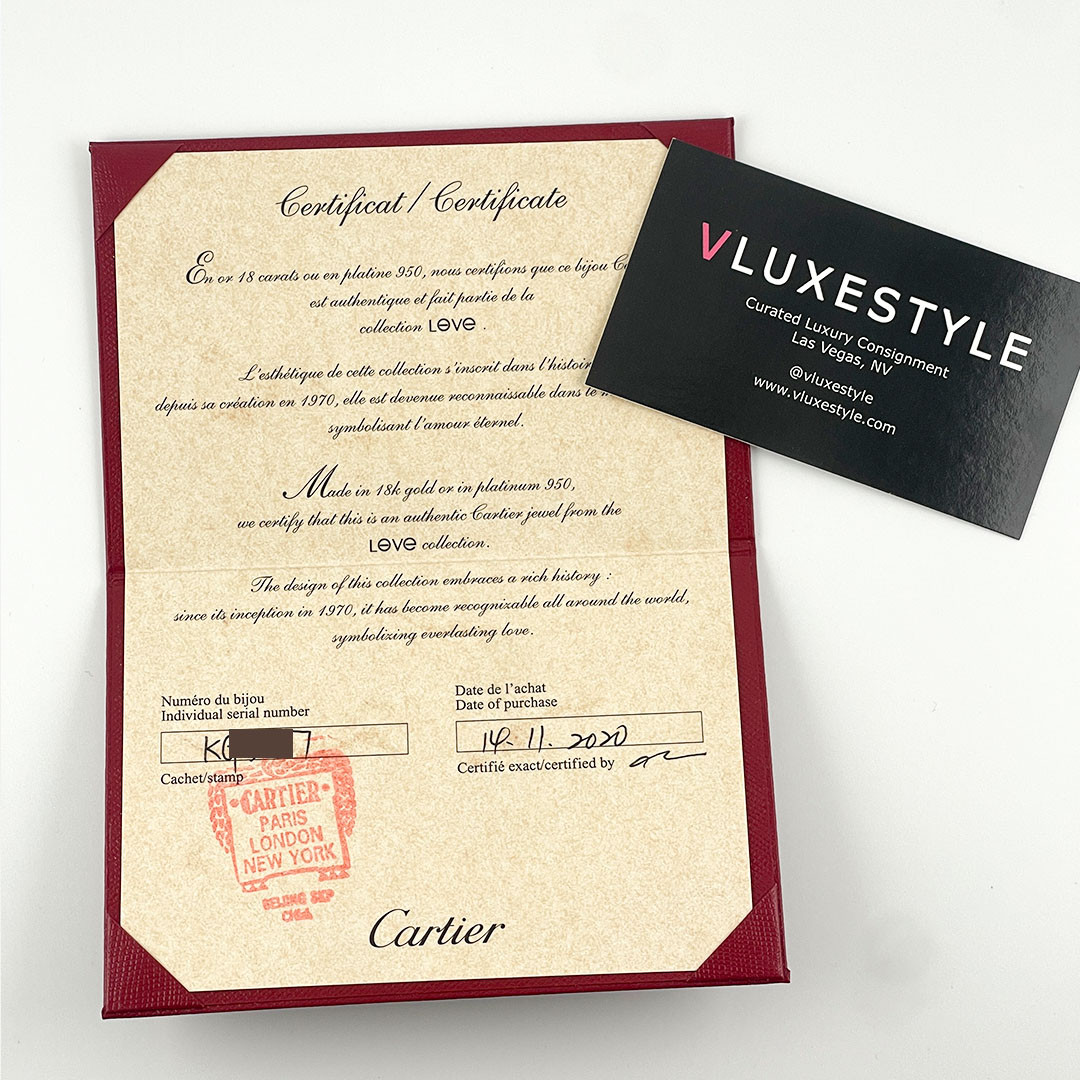 Comes with: Full set, original receipt, Cartier box, Cartier jewelry box, travel pouch, Cartier Authenticity Certificate, VLuxeStyle Authenticity Certificate