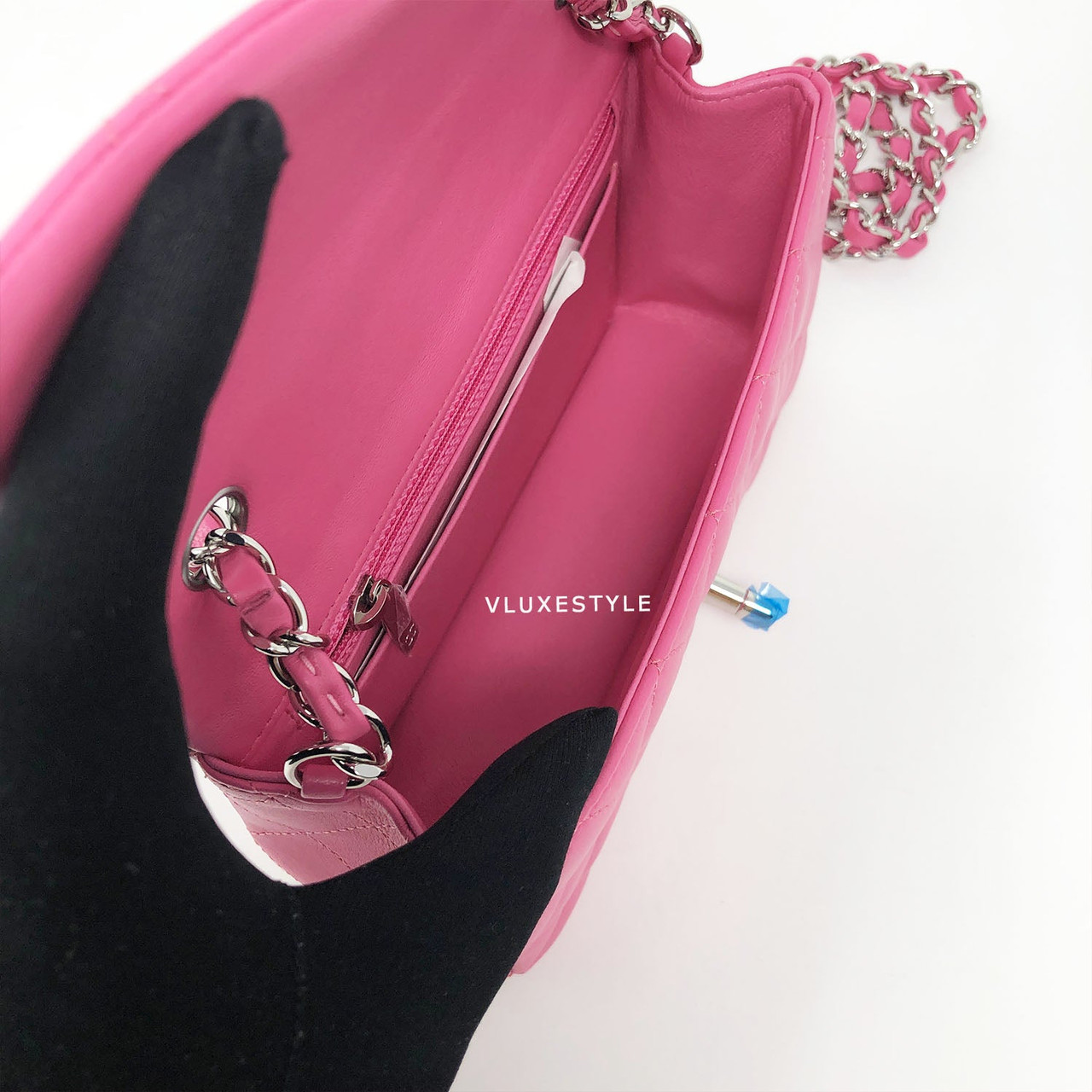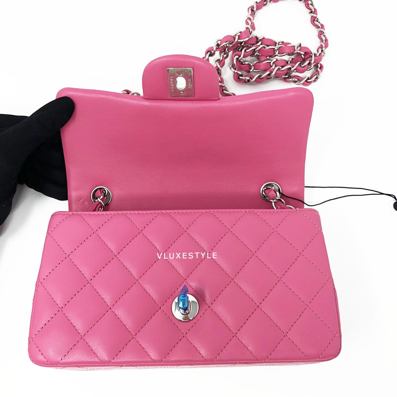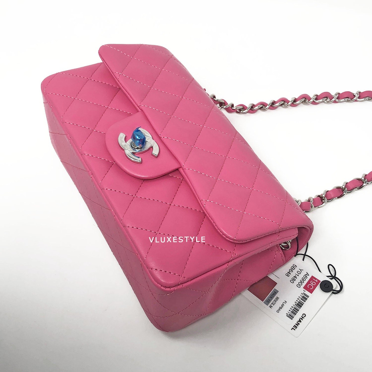 Boutique Fresh/ Brand New with tags and receipt! 19C Classic Mini Rectangular Bubblegum Pink Lambskin with silver hardware. Made in France/27 series/Dec 2018.