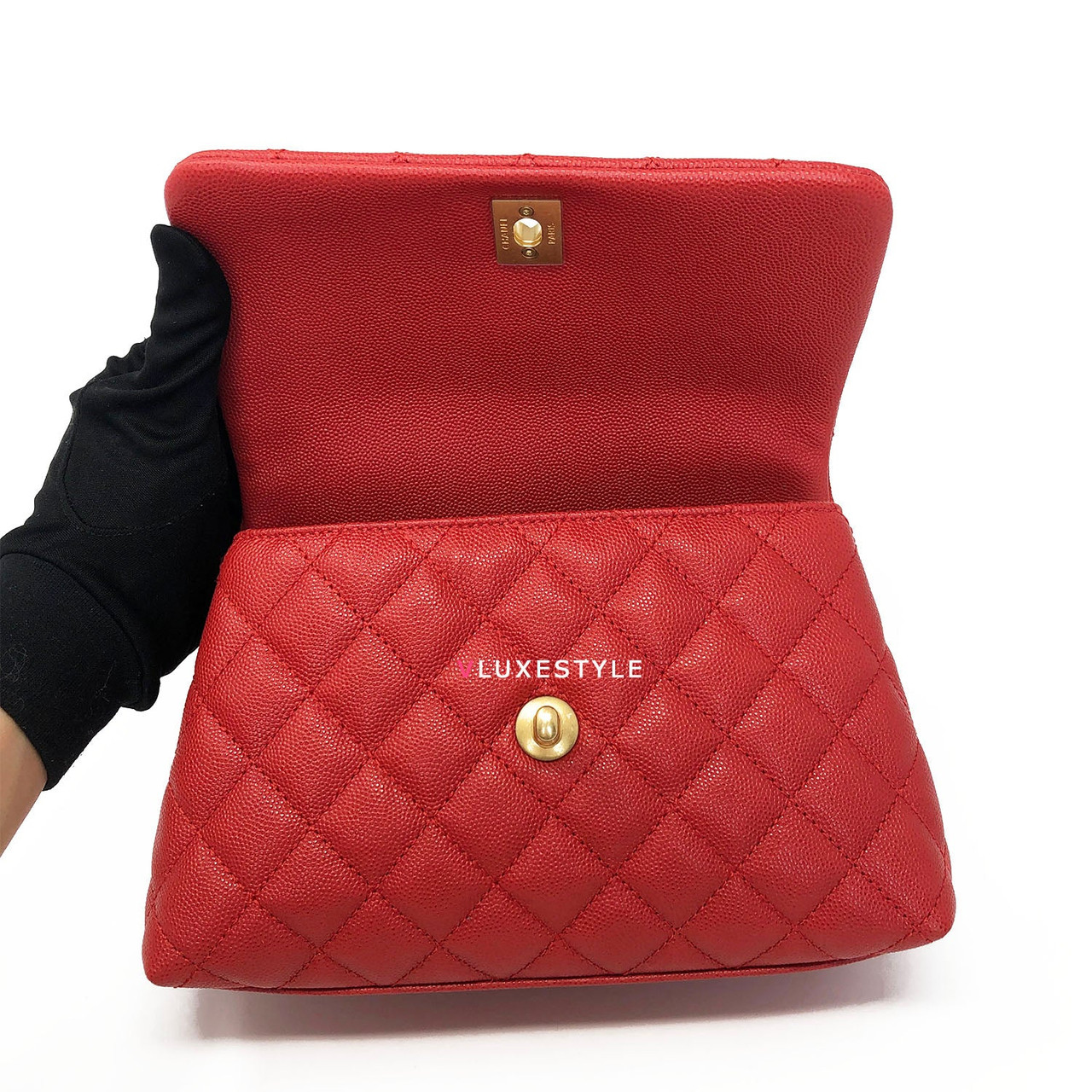 A waitlisted and sold out style! Boutique fresh/ Brand new with tags and receipt! 19P Mini Coco Handle Red Caviar with brushed gold hardware. Made in Italy/27 series/Feb 2019.
