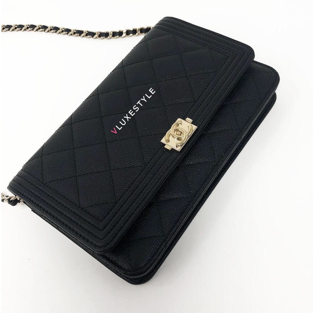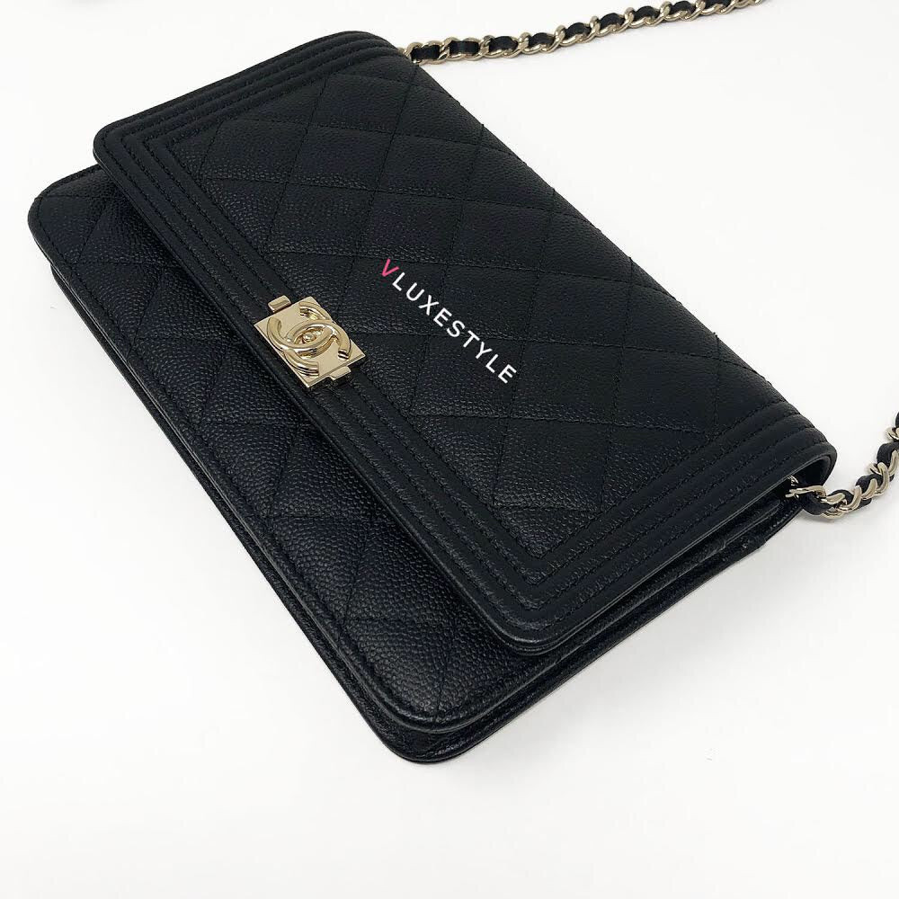 Rare find! LIKE NEW Boy wallet on chain Black Caviar with gold hardware in like new condition, no corner wear, no signs usage, the leather smells brand new. Made in Italy/22 series/2016.