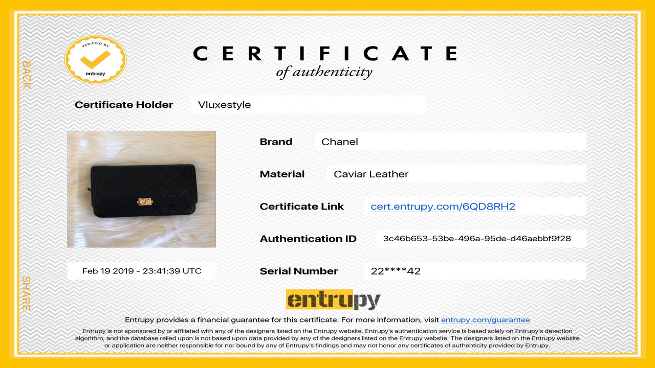 The bag comes with complete set, authenticity card, tags, receipt, dust bag, lace, camellia and box with additional third-party Entrupy Authenticity Certificate.