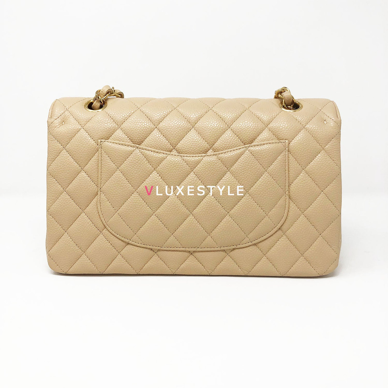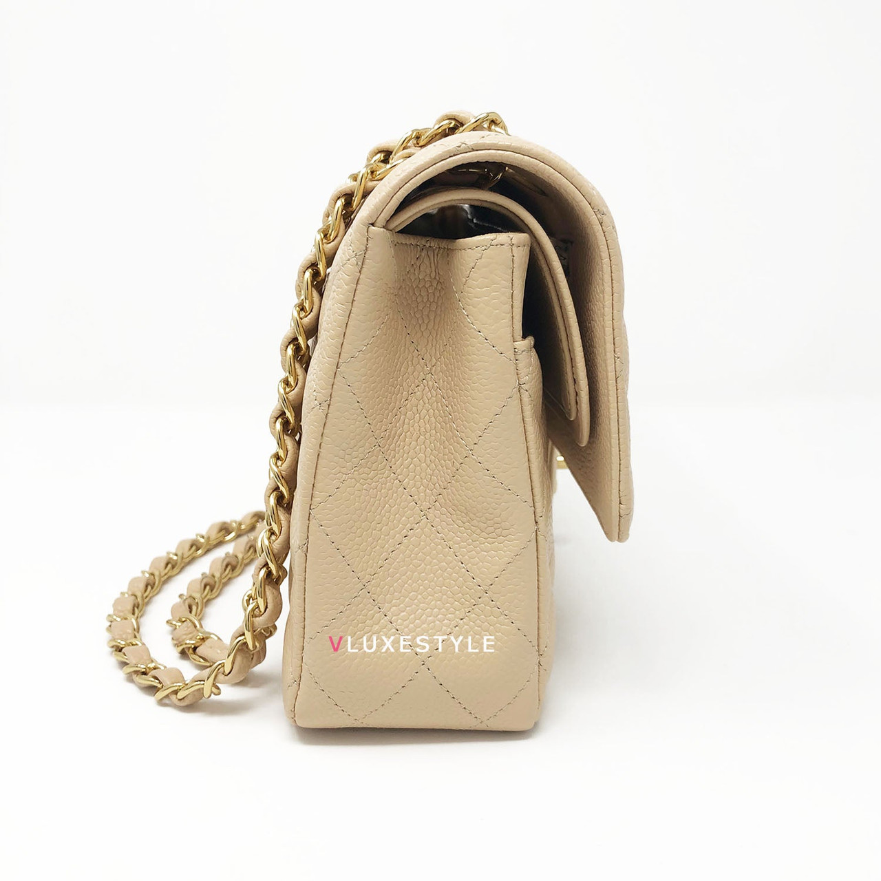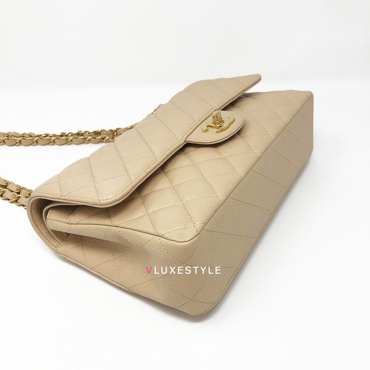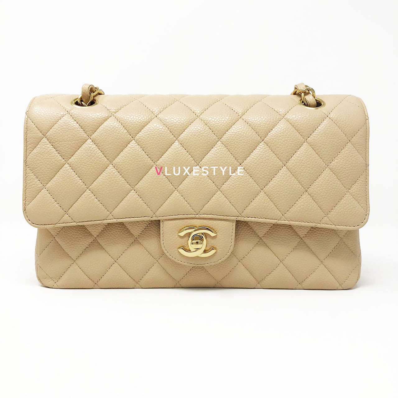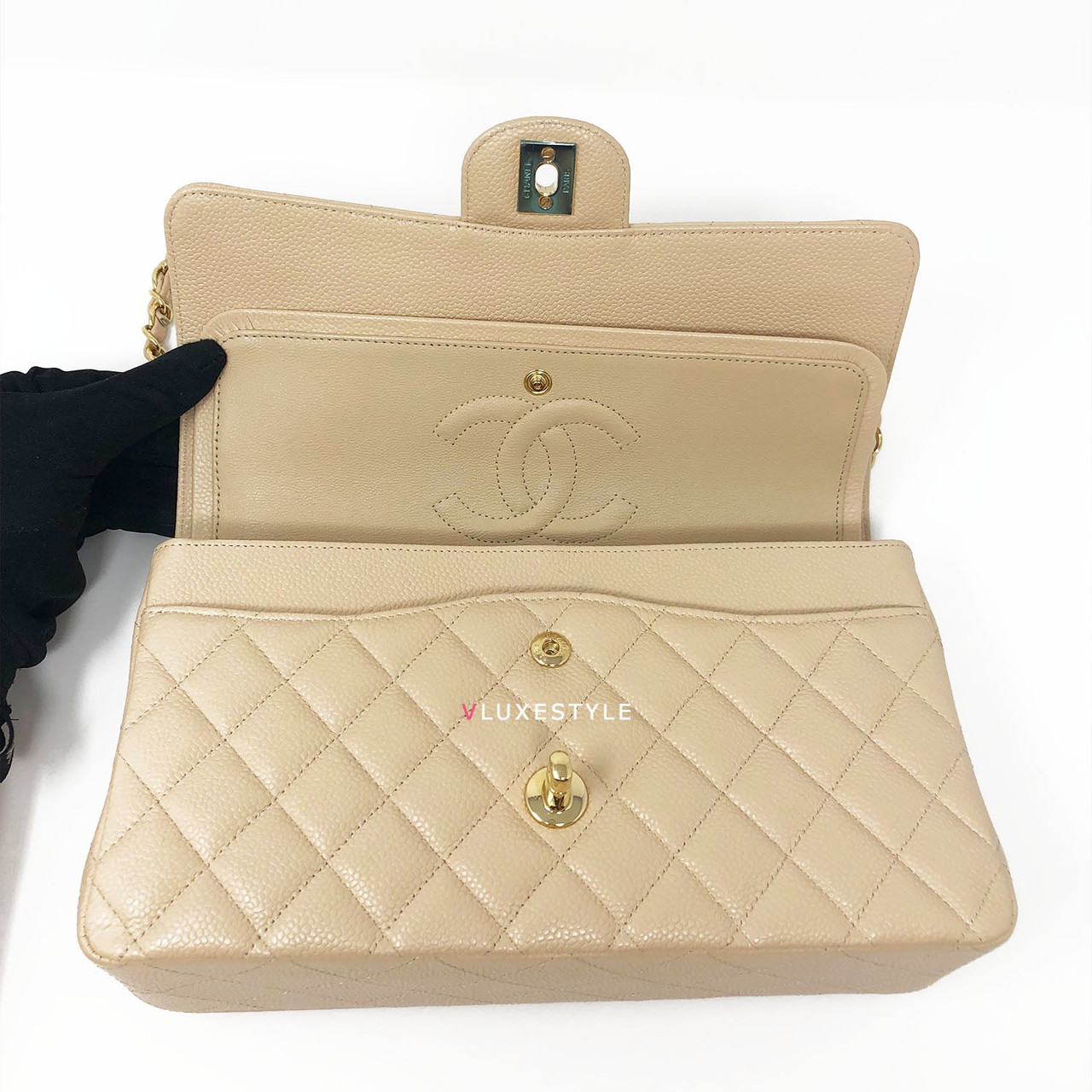 Just arrived! Classic Beige Medium Caviar with gold hardware. Made in France/23 series/2017. The bag is in excellent condition, no color transfer, no corner wear, light hairline scratches on the cc hardware, protective sticker on the inside hardware. The bag is clean inside and out.