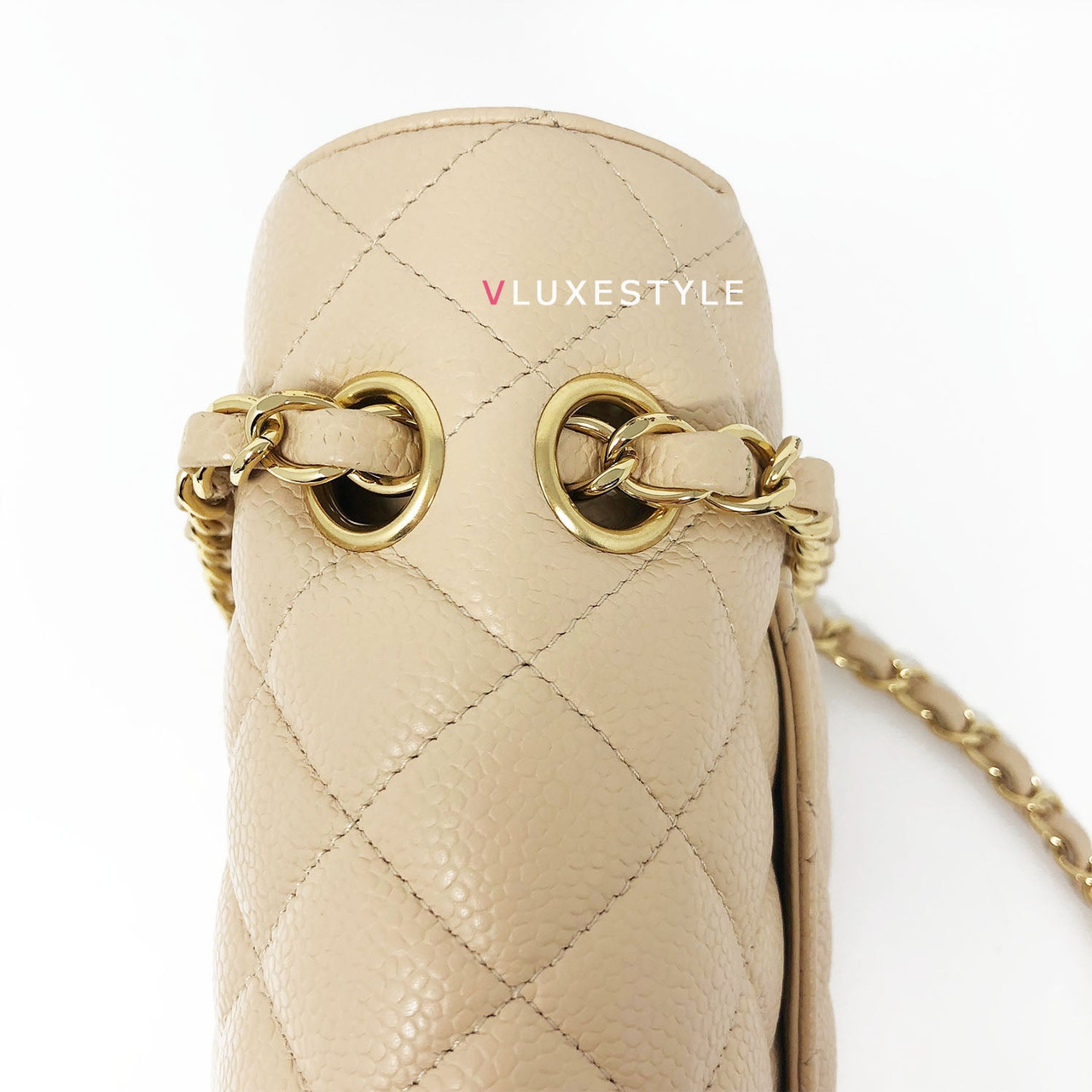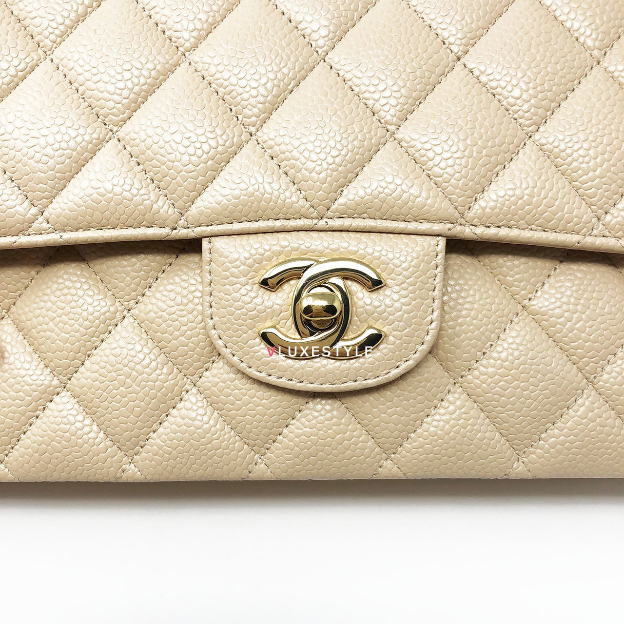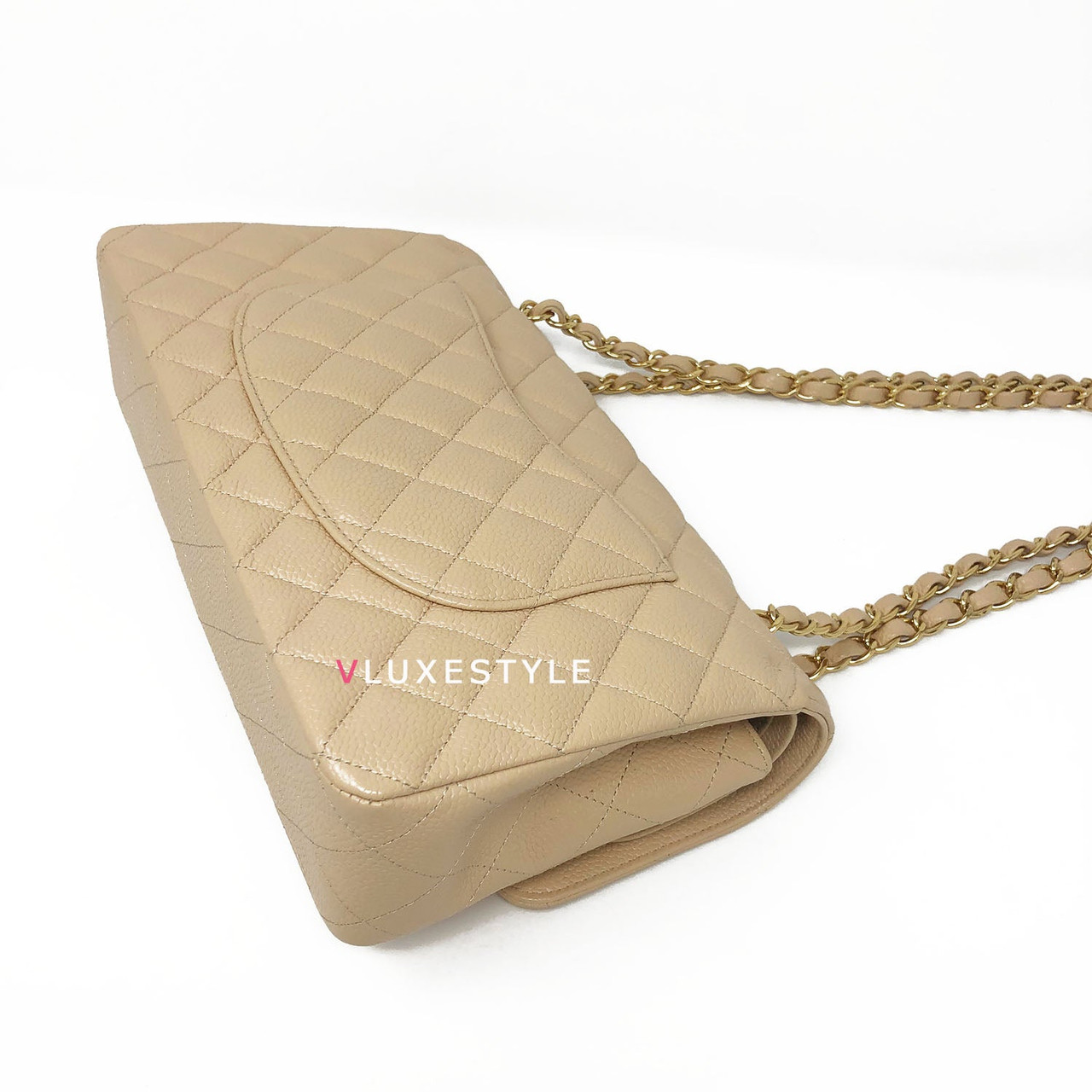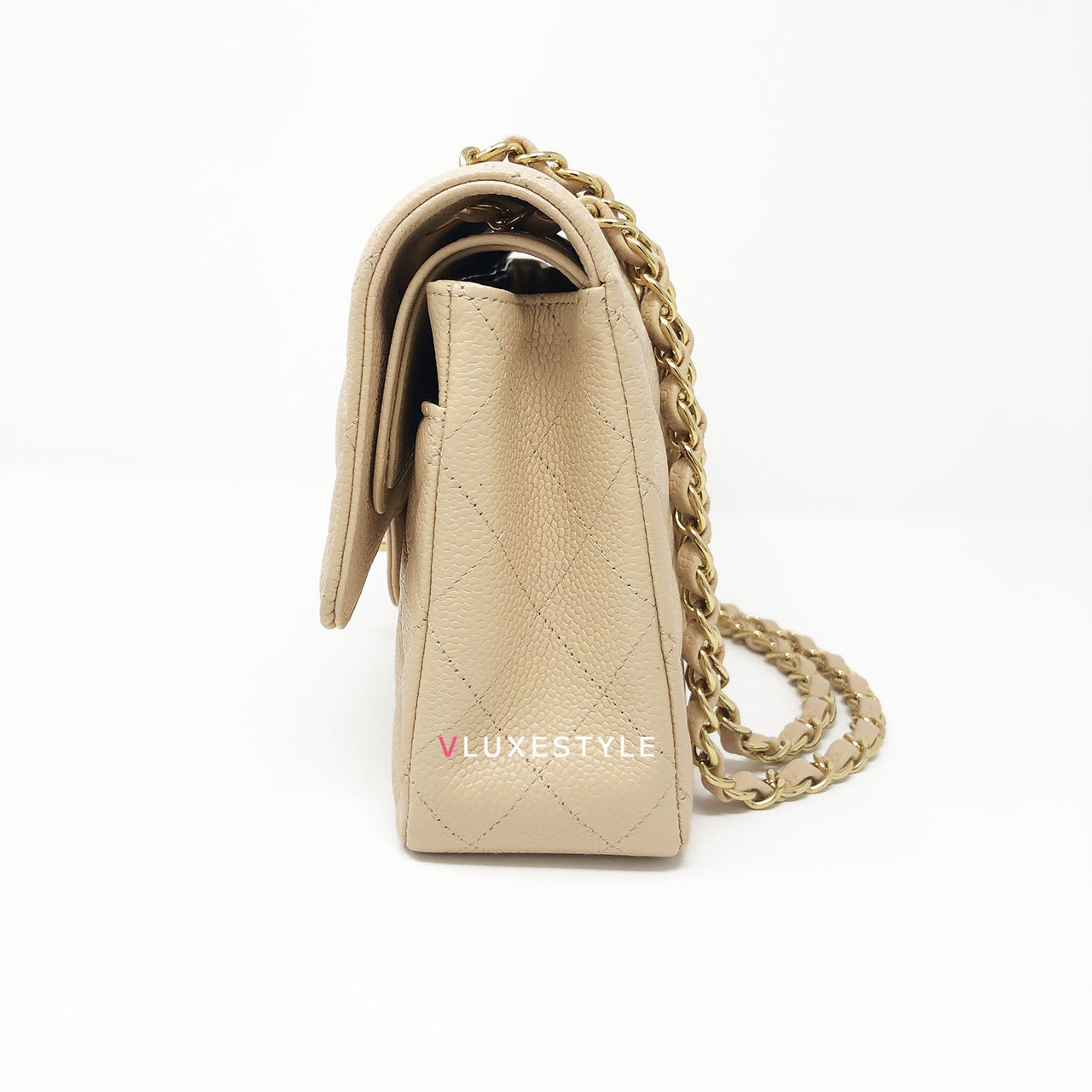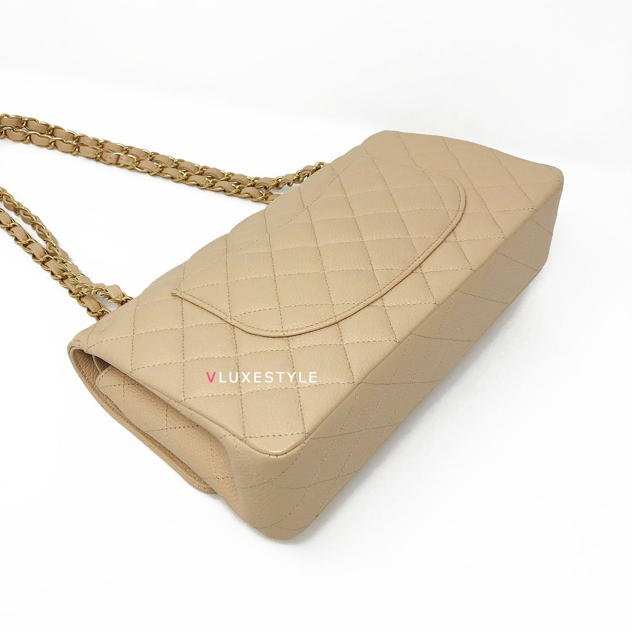Just arrived! Classic Beige Medium Caviar with gold hardware. Made in France/23 series/2017. The bag is in excellent condition, no color transfer, no corner wear, light hairline scratches on the cc hardware, protective sticker on the inside hardware. The bag is clean inside and out.