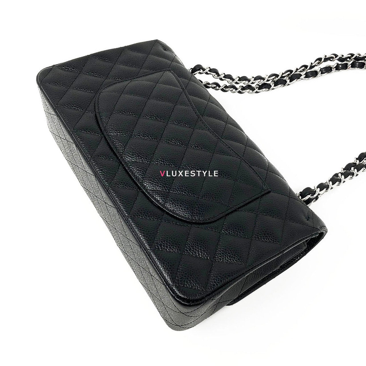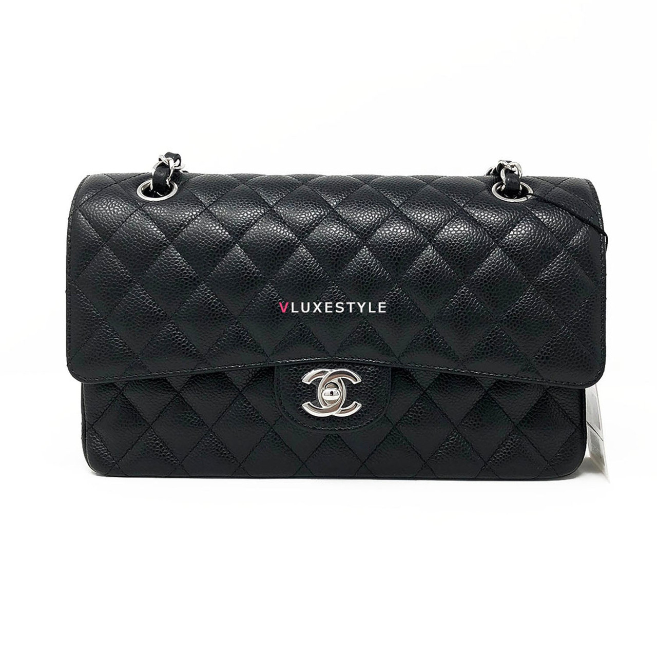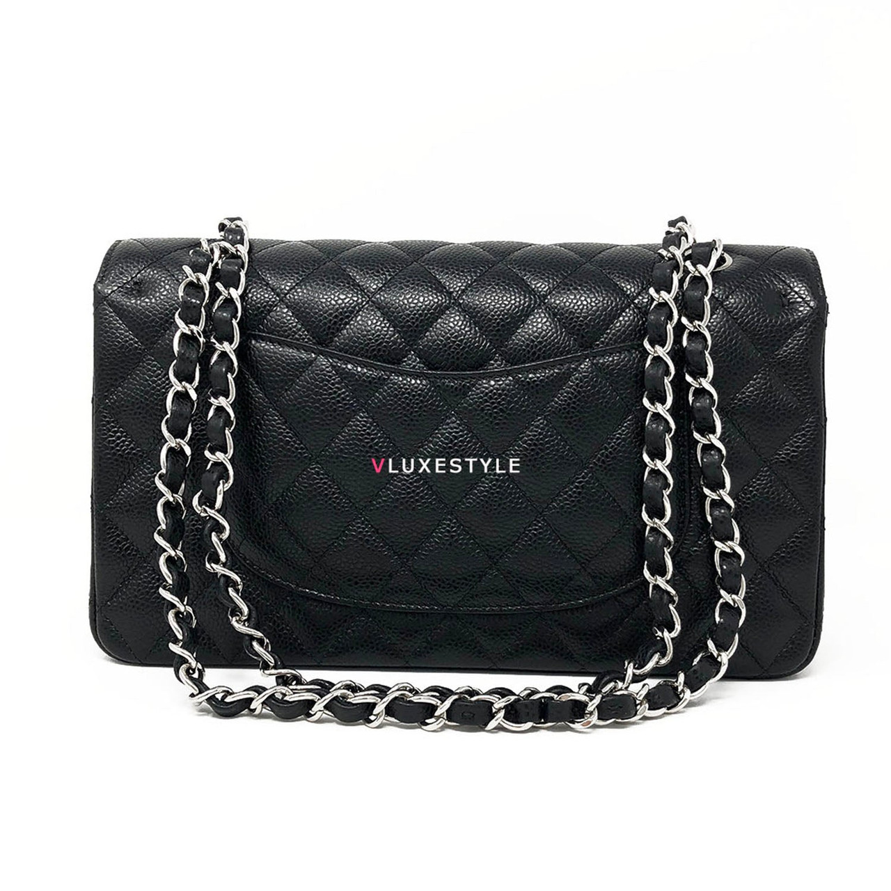 Gorgeous and Authentic Chanel Classic Medium Double Flap Black Quilted Caviar with silver hardware. This timeless and stylish shoulder bag is crafted of luxurious and durable caviar leather in black and silver hardware. The bag can be worn long and short over-the-shoulder. It is essentially a timeless piece that exudes elegance, its the perfect bag for every occasion.