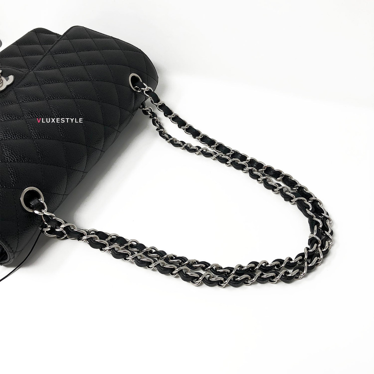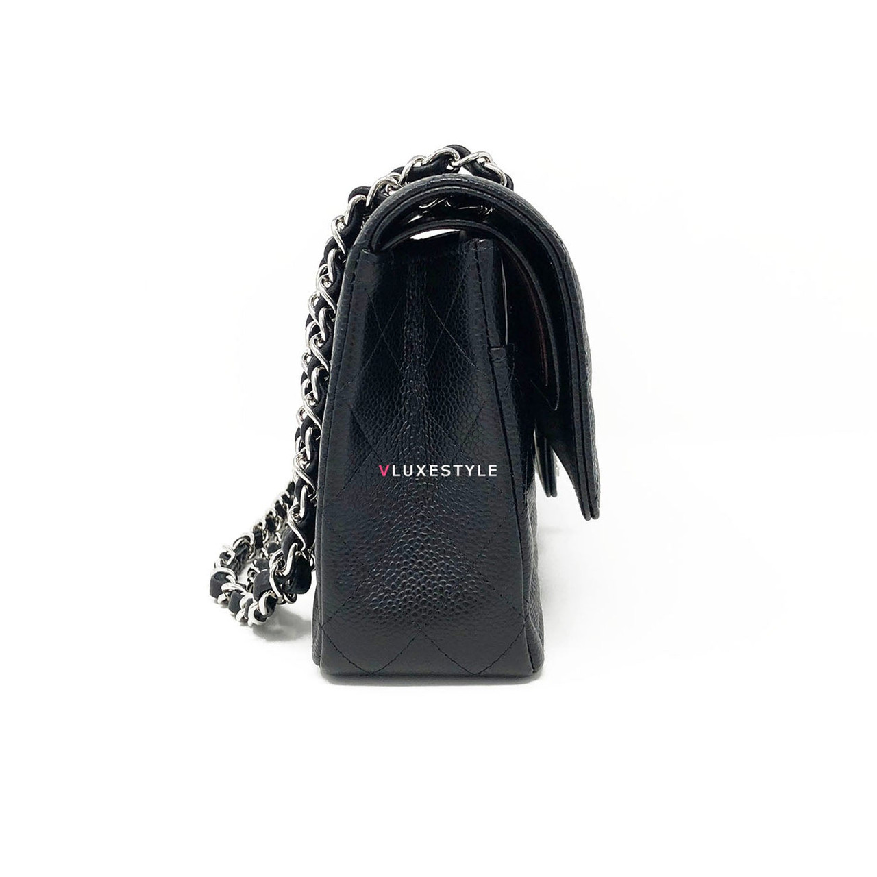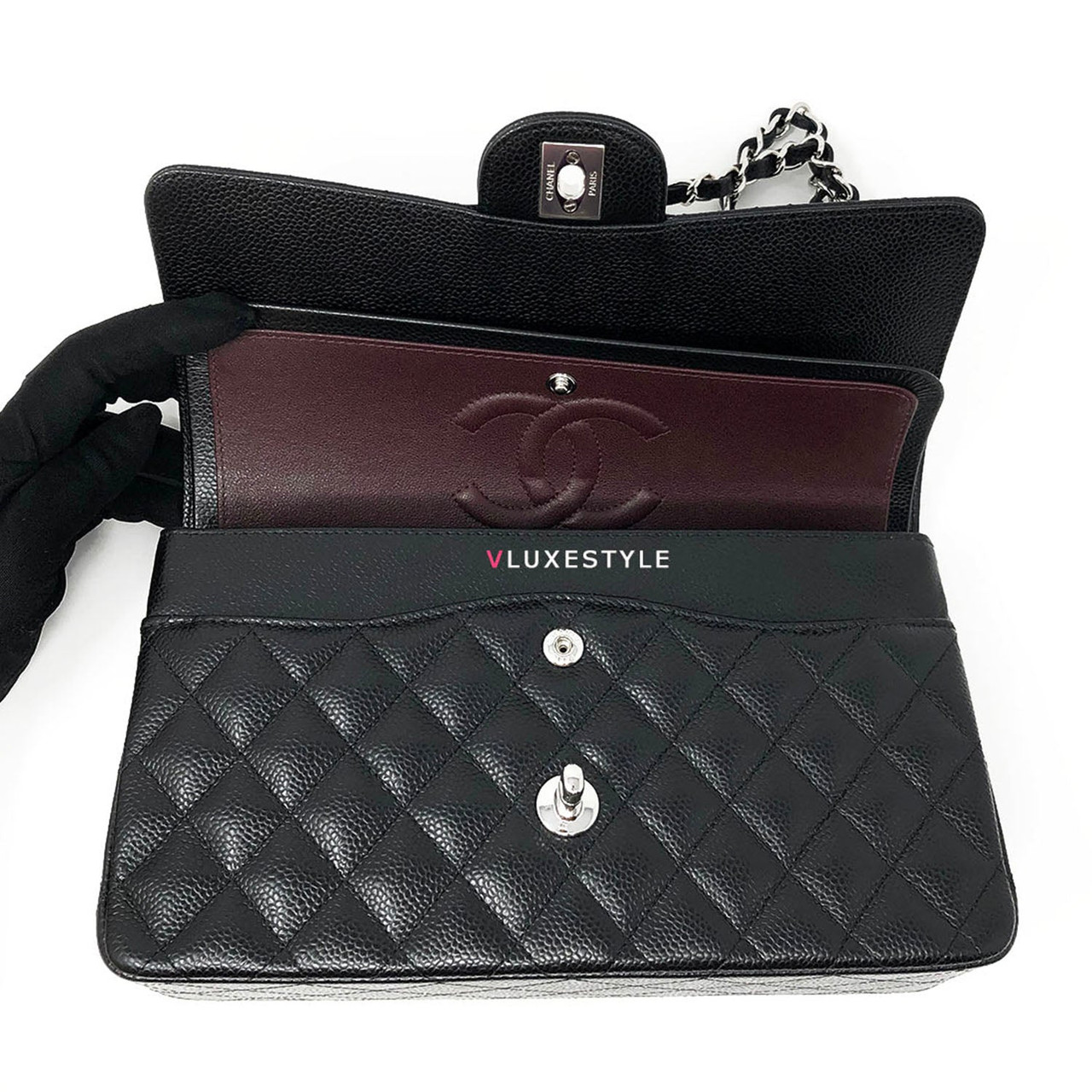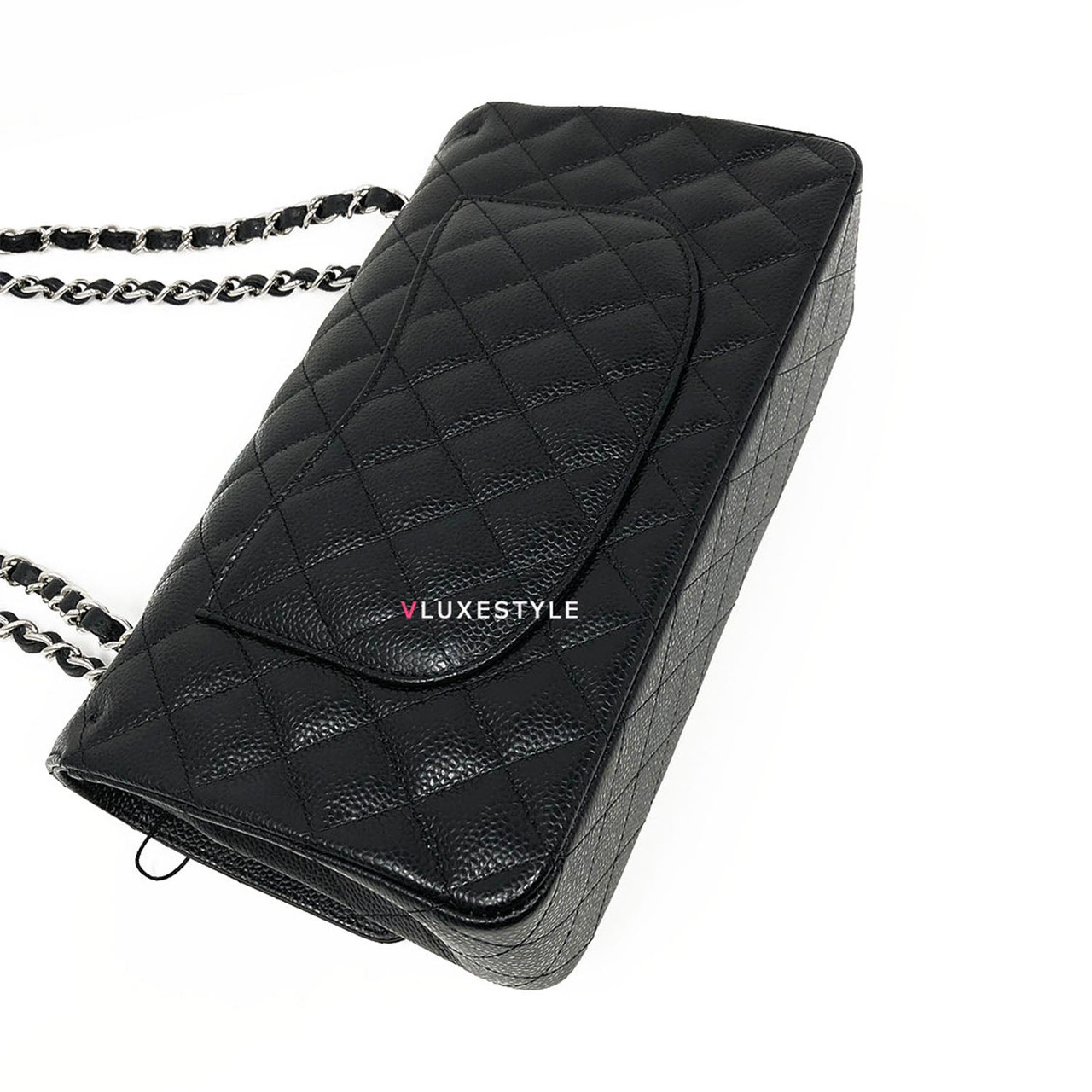 Gorgeous and Authentic Chanel Classic Medium Double Flap Black Quilted Caviar with silver hardware. This timeless and stylish shoulder bag is crafted of luxurious and durable caviar leather in black and silver hardware. The bag can be worn long and short over-the-shoulder. It is essentially a timeless piece that exudes elegance, its the perfect bag for every occasion.