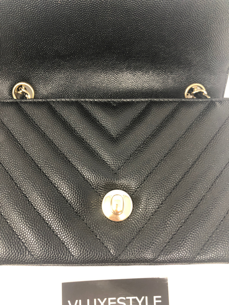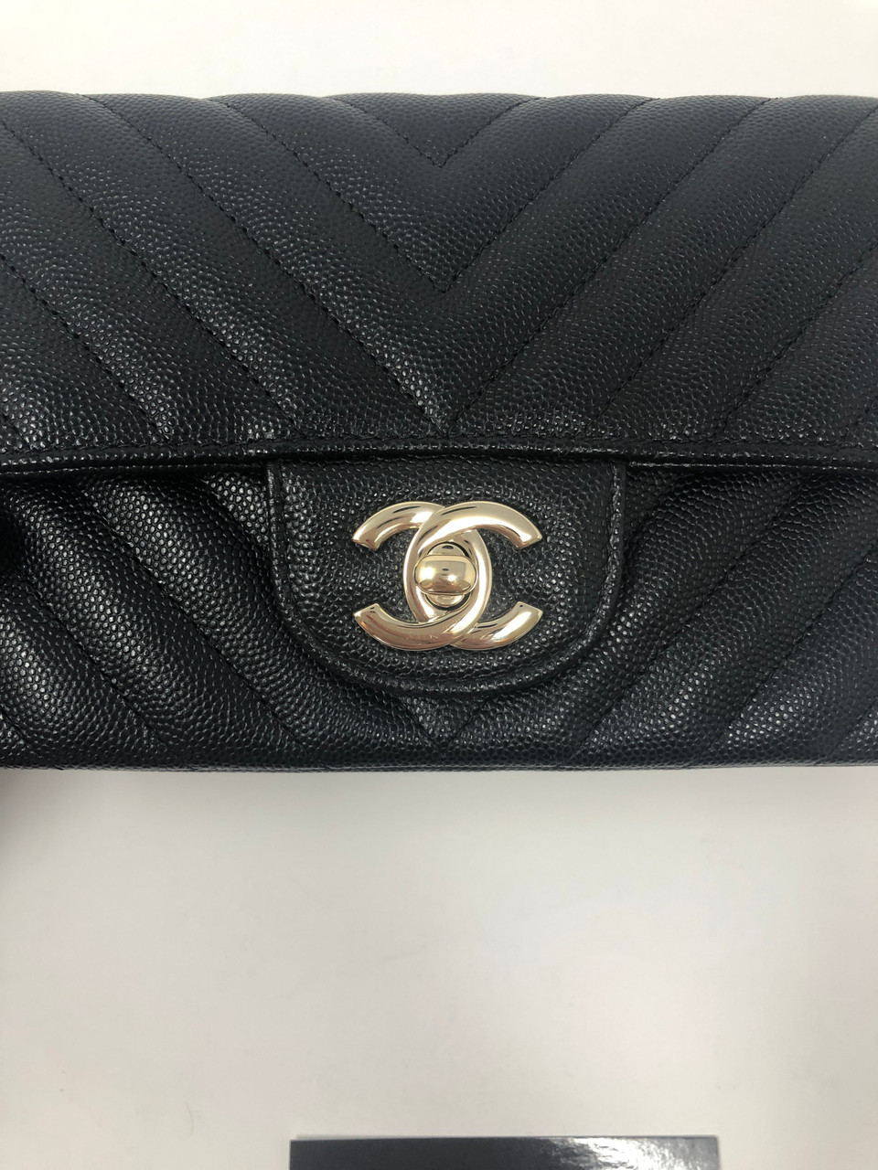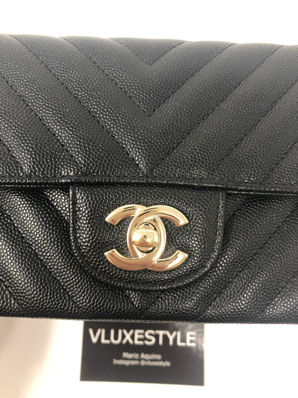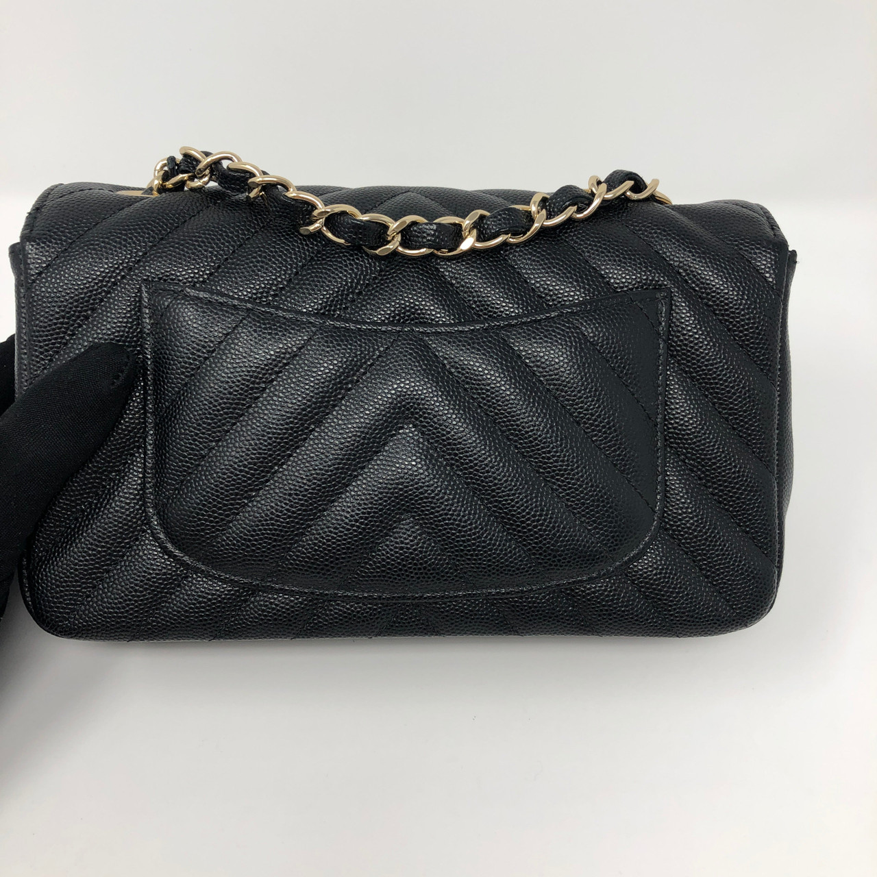 Very hard to find these days! The highly sought after! 18B Mini Classic Mini Rectangular Black Caviar with light gold hardware. Like new condition, used few times, Made in France/26 series/Aug 2018. (Strap drop: 23 , Dimensions: 8L x 5H x 2.5W)
